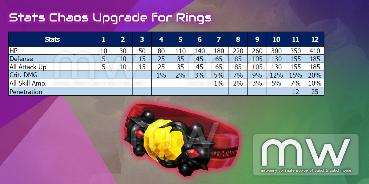 - Stats of Chaos Upgrade for Ring: