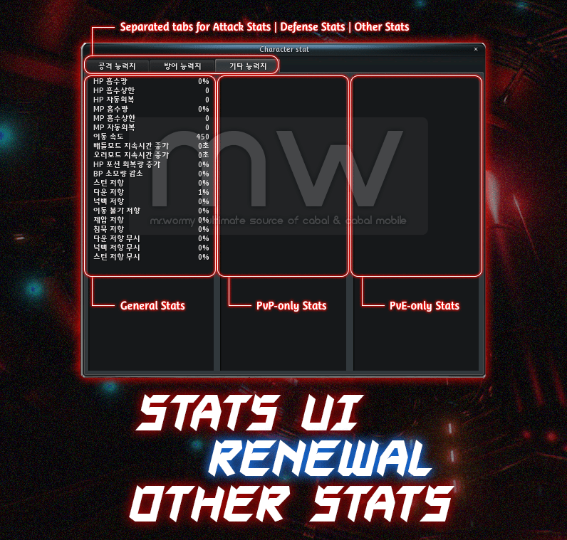- Other Stats: Other stats that will be applied for both PvP and PvE.
