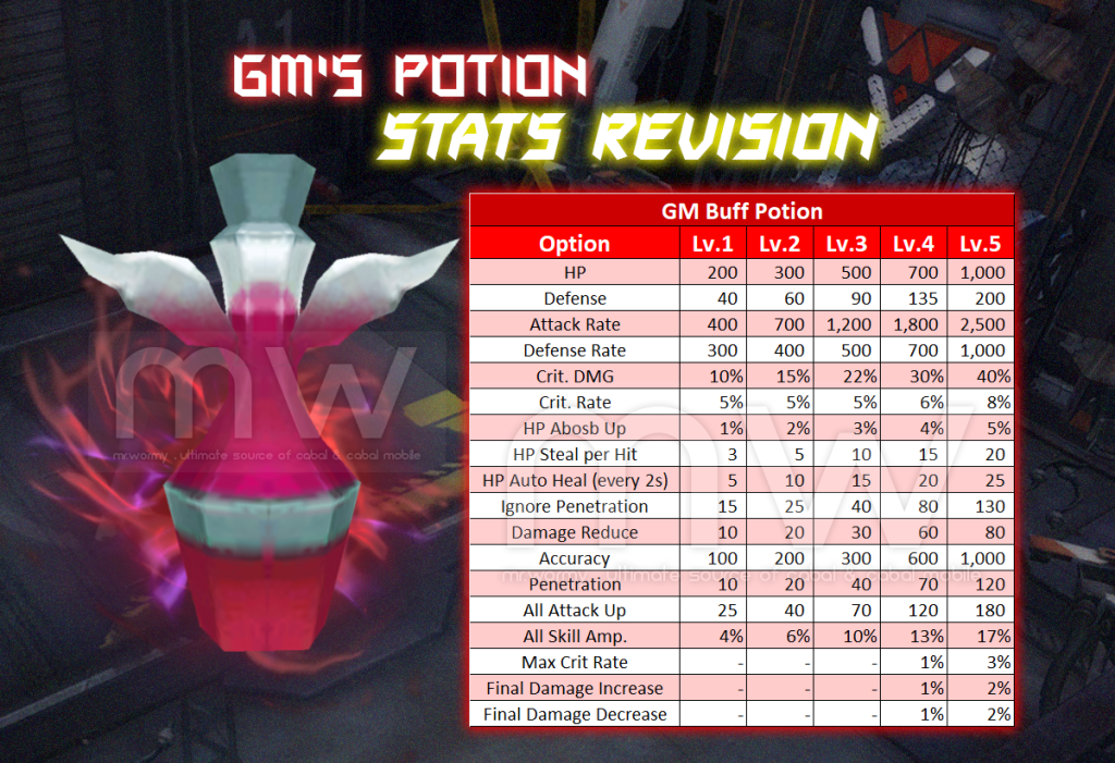 - Summary of Stats for all GM’s Buff / GM’s Buff Potions