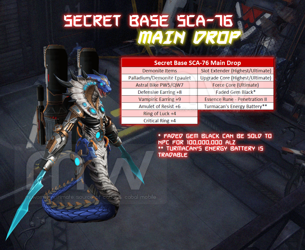 - Able to drop from Legendary Box of Secret Base SCA-76
