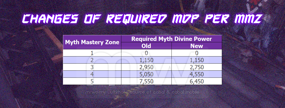 - Change of the required Myth Divine Power for unlocking Myth Mastery Zone: