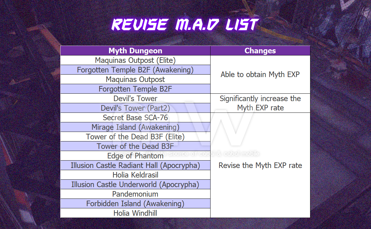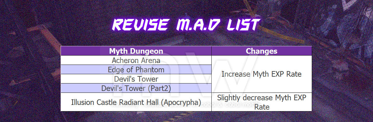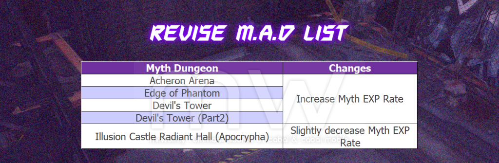 2. Change related to M.A.D (Myth EXP Acquisition Dungeons)