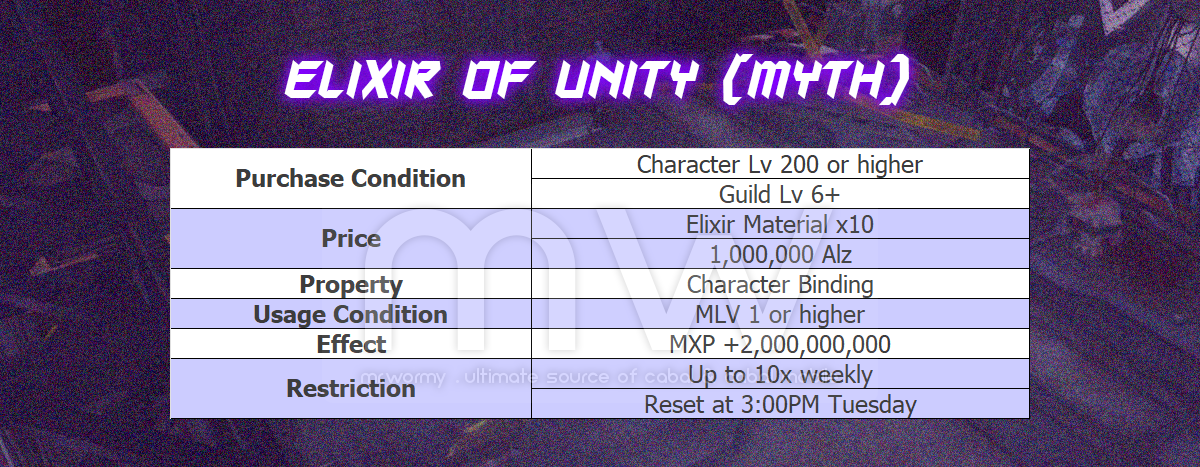 3. Change the amount limit for purchasing the Elixir of Unity (Myth) from Guild Shop: