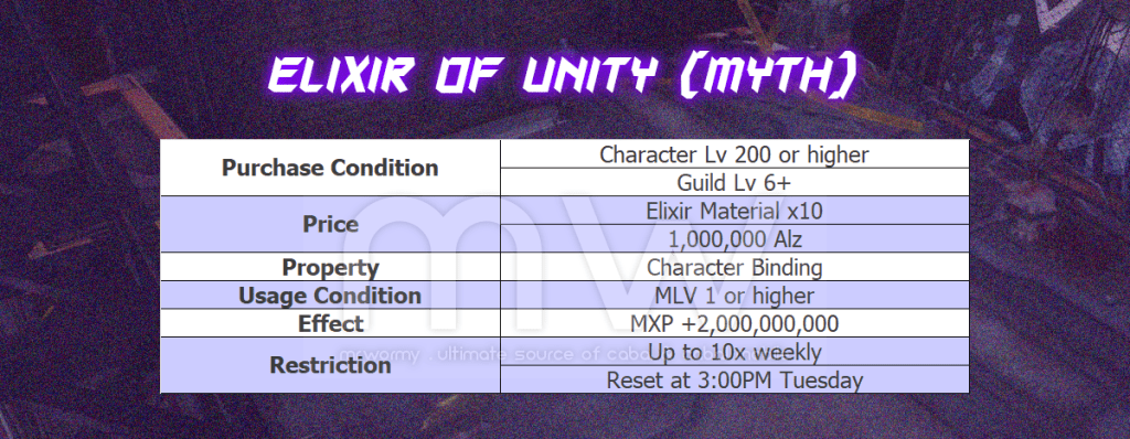 1. Add “Elixir of Unity (Myth)” into the Guild Shop