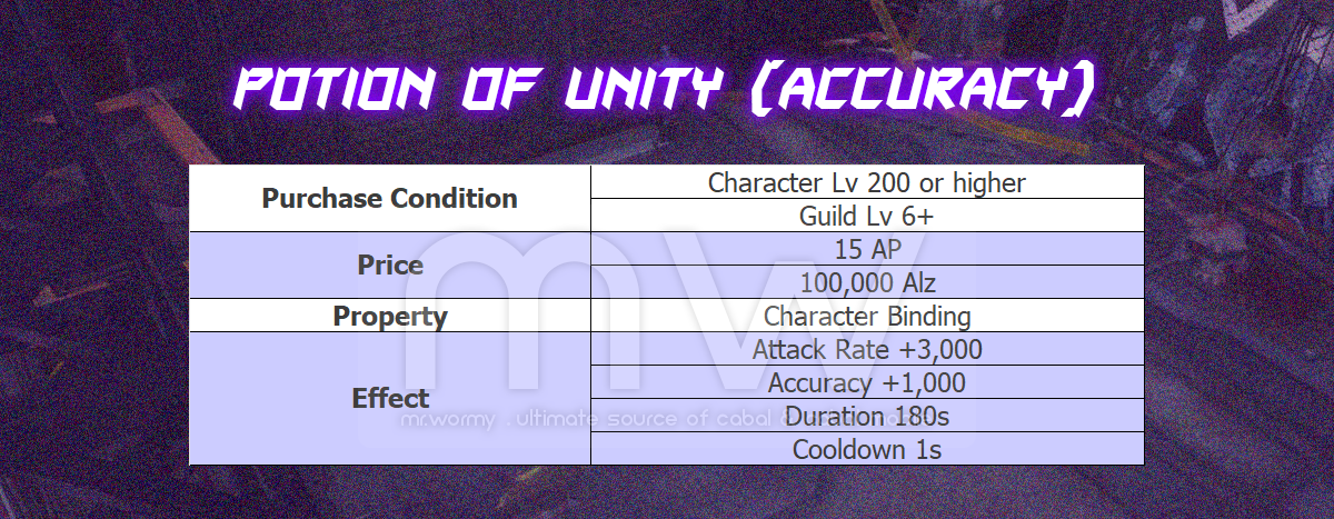 3. Fix and error that cooldown was displayed abnormally when using Potions with Accuracy stats.