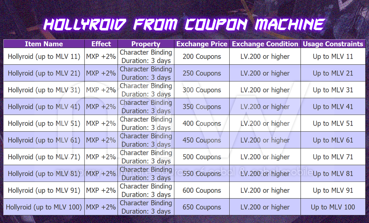 - Add “Hollyroid (Highest)” to the drop list of Dragon’s Treasure Chest in Labyrinth dungeon.