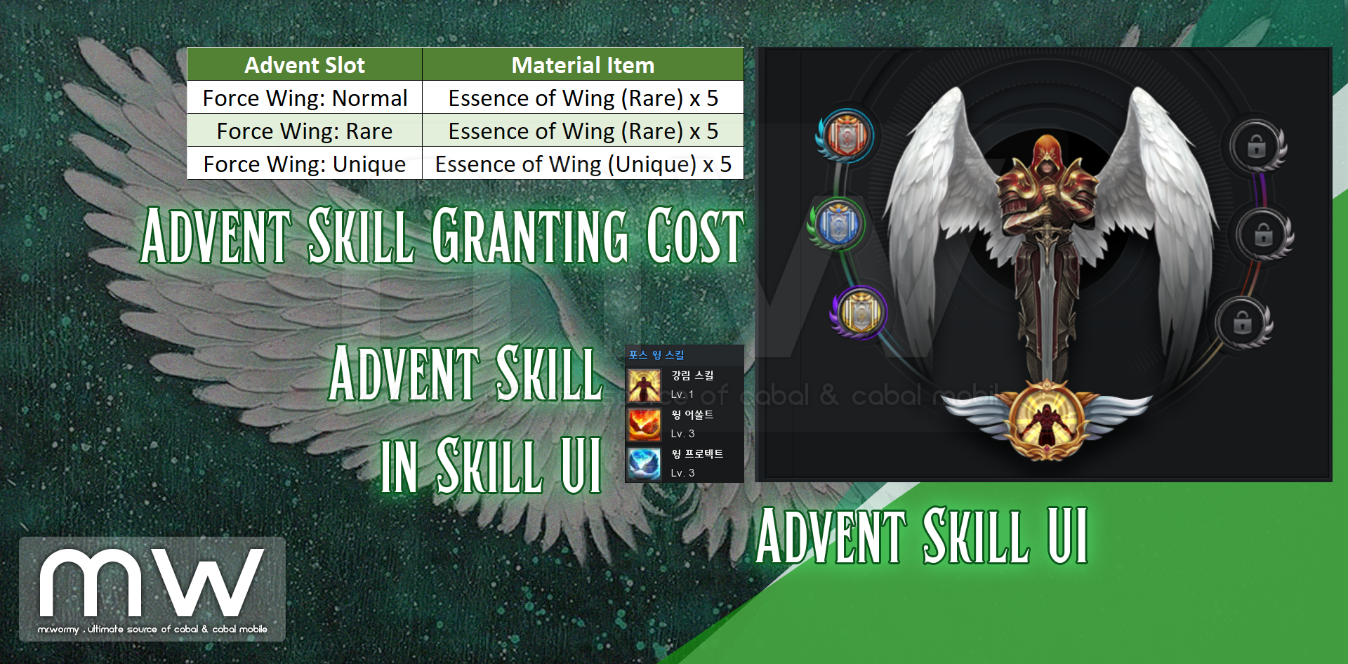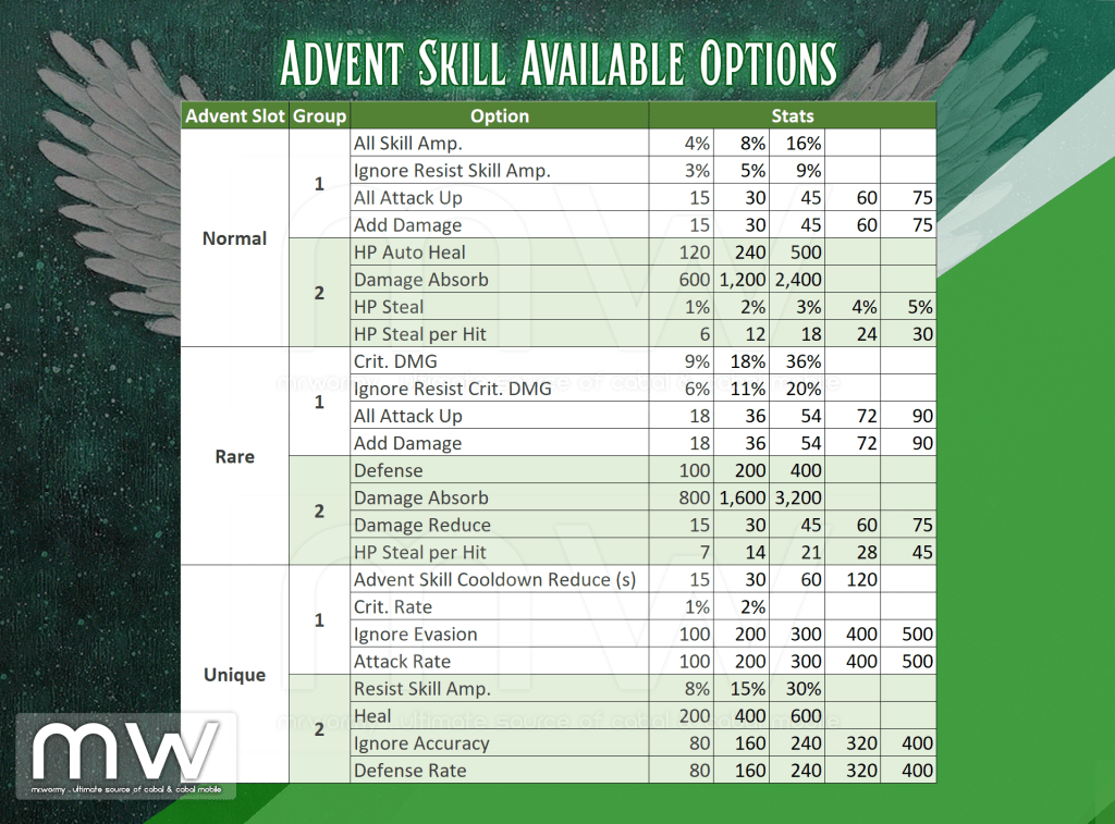 - For granting the stats, Essence of Wing according to the grade of the Advent Slot will be consumed.
