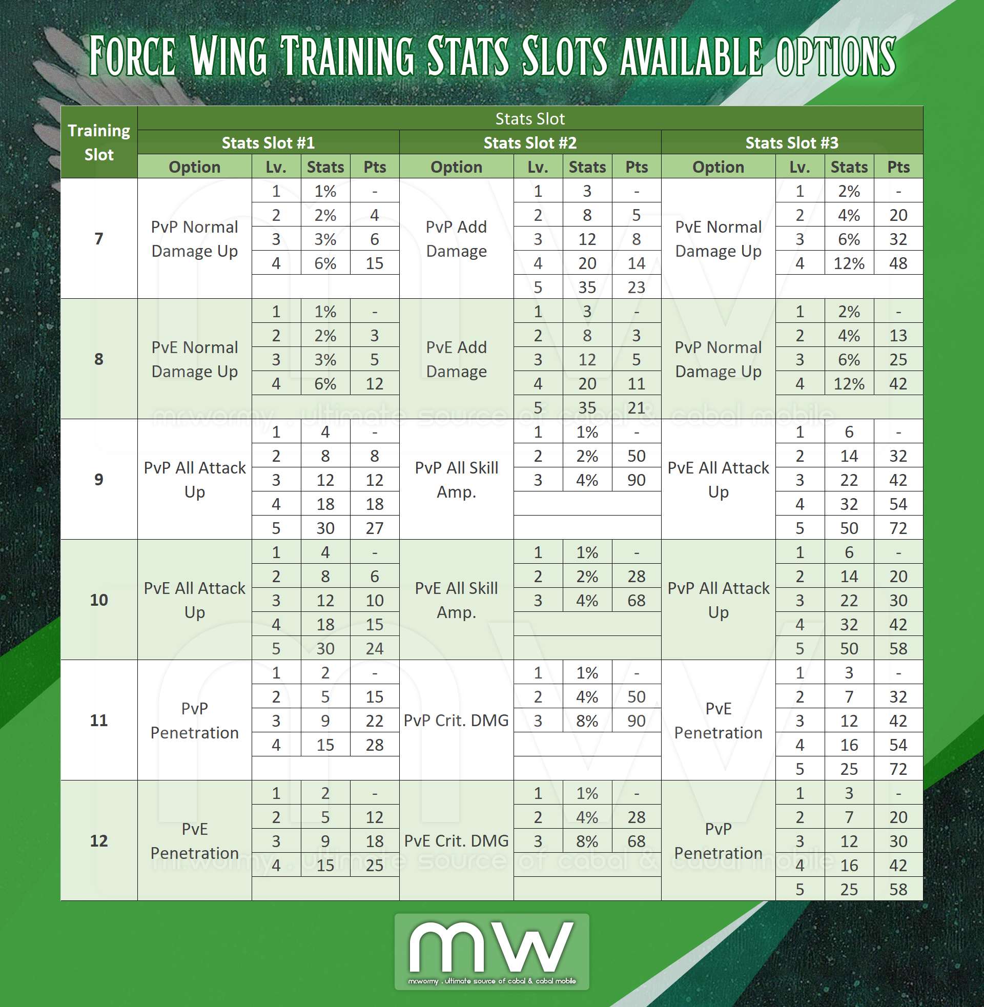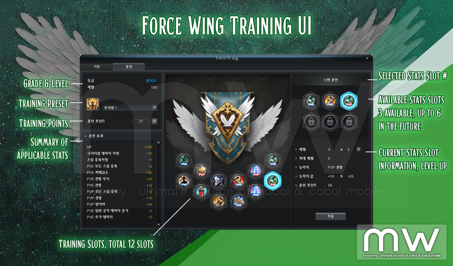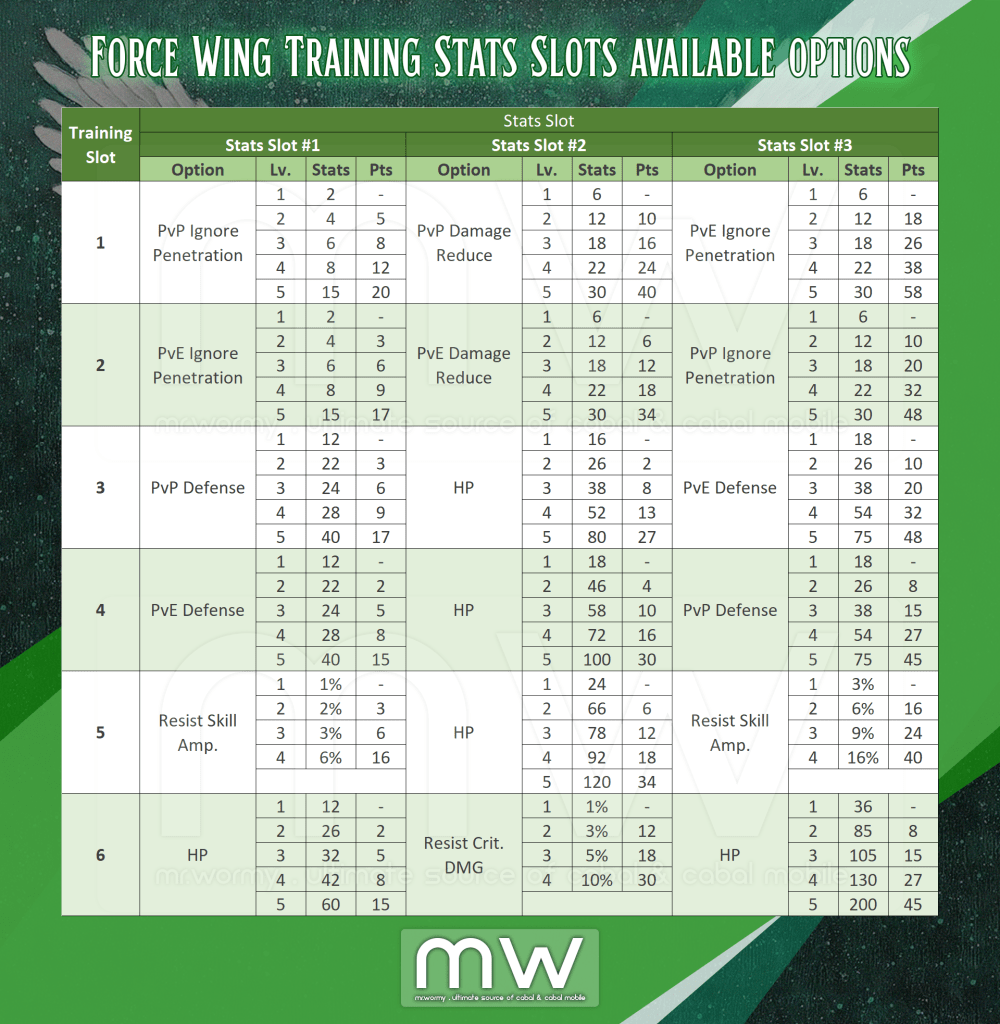 - There is total 06slots, depends on the Force Wing Grade, equivalent slots will be available.