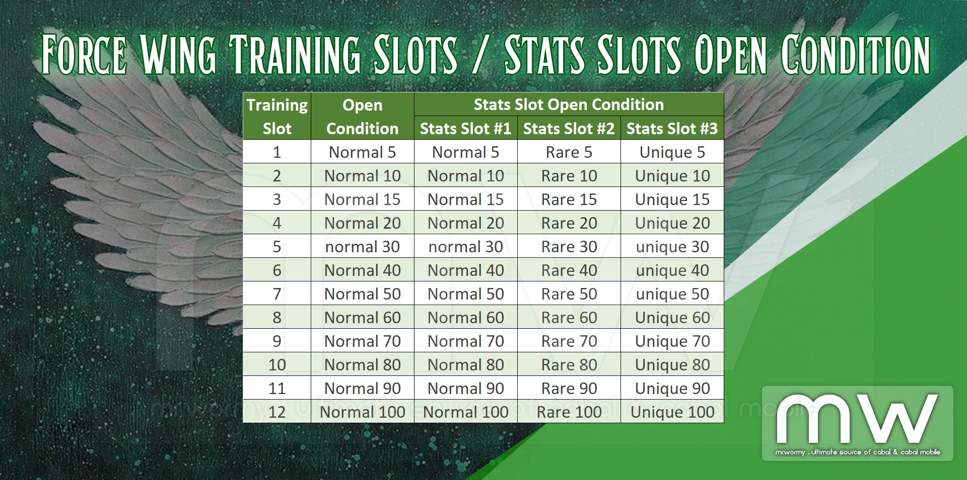 - When the Force Wing Rank reaches the equivalent slot, the slot will be opened automatically.