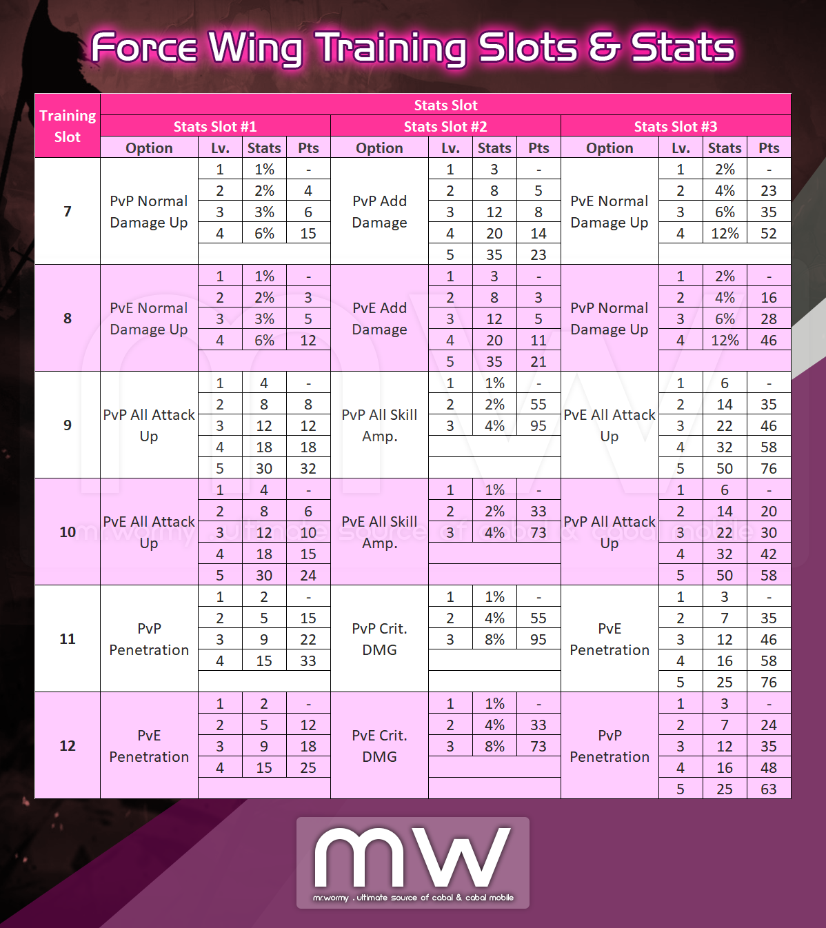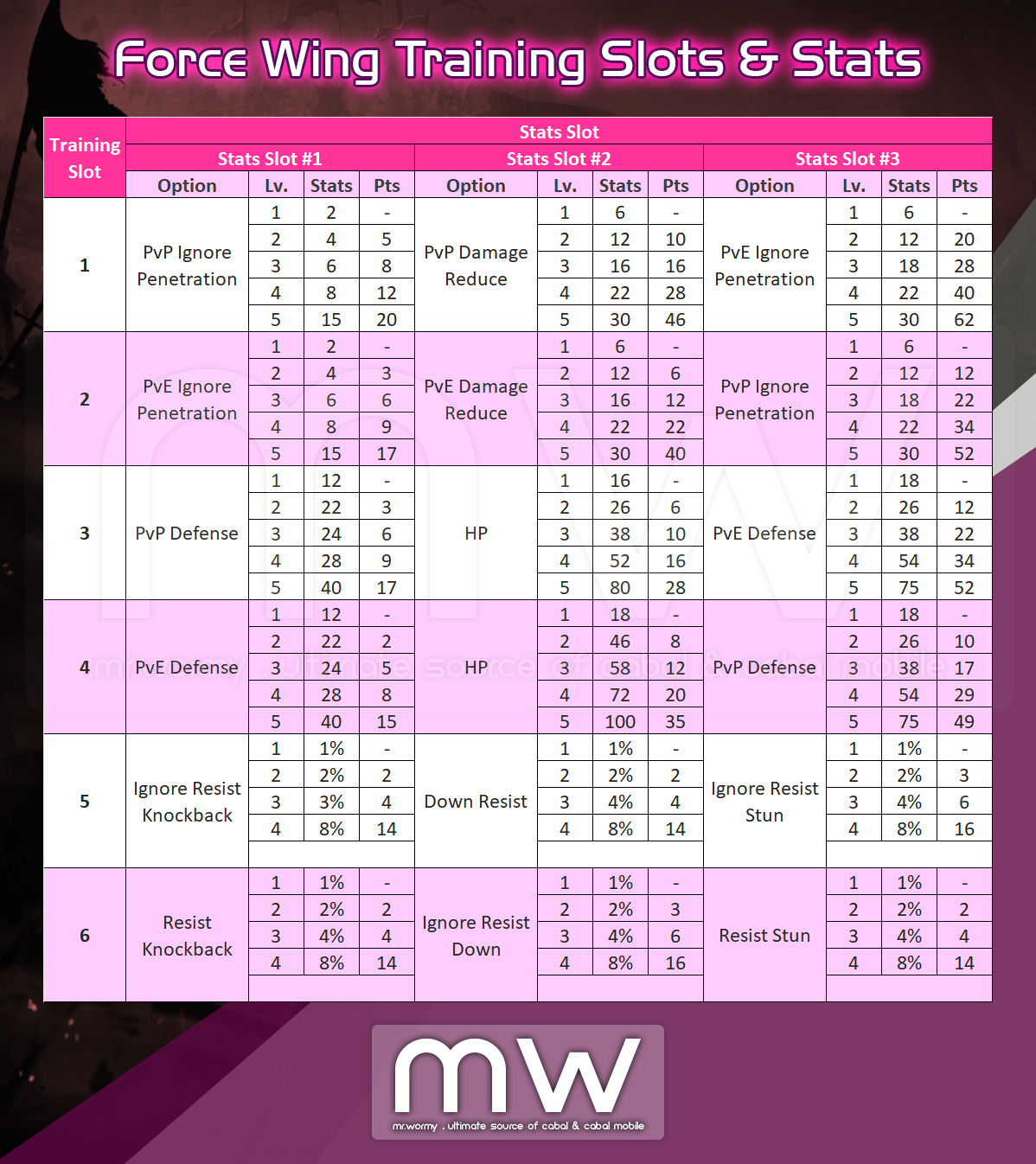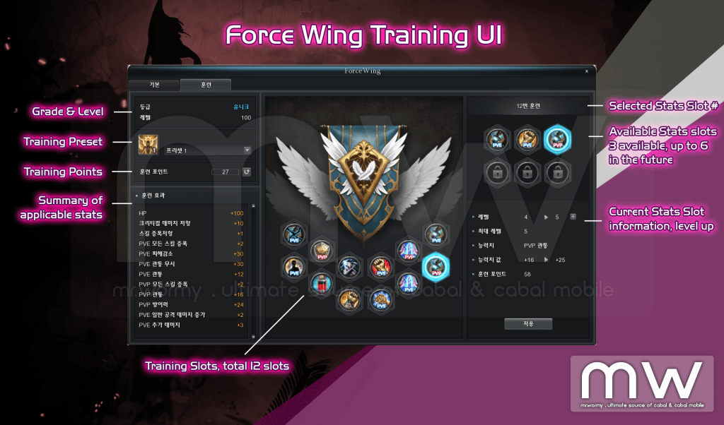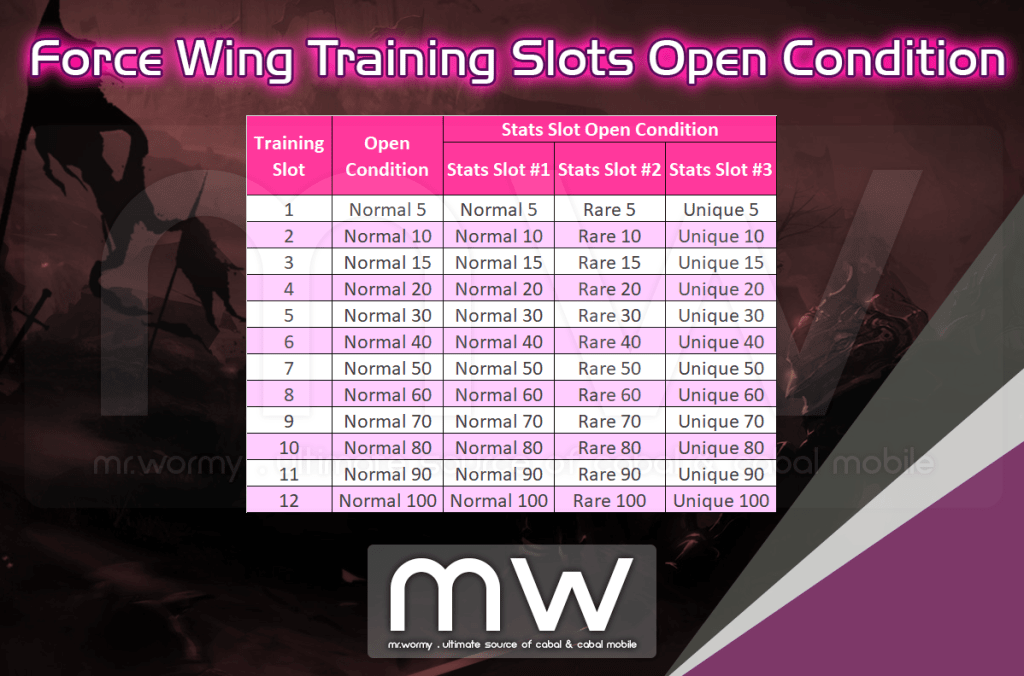 - There is total 06slots, depends on the Force Wing Grade, equivalent slots will be available.