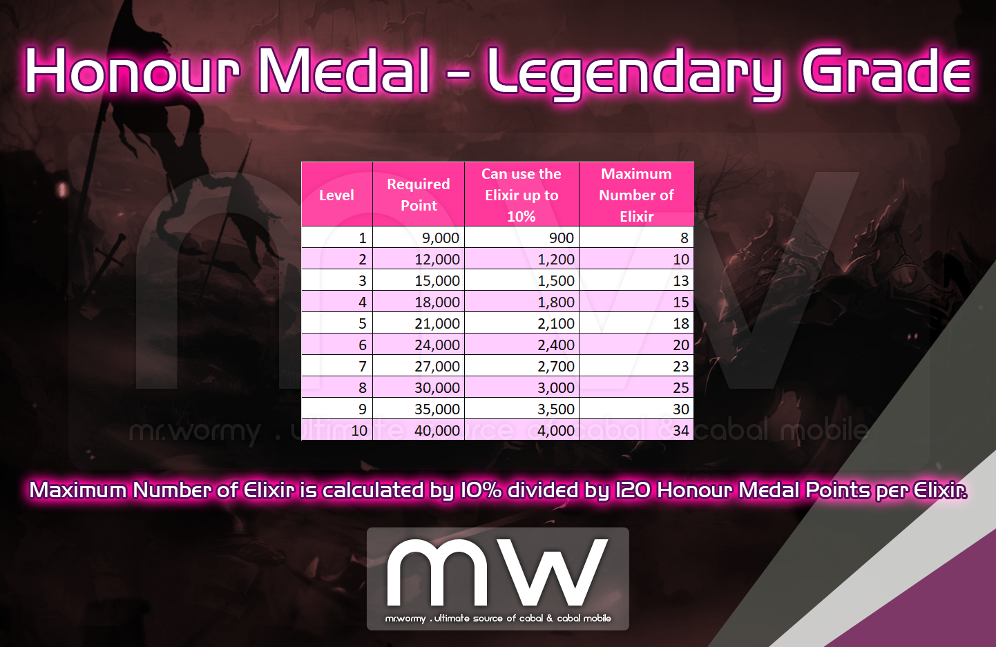 - Elixir from NPC can be used to fill up the Honour Medal level of Legendary grade, but it’s capped at 10%.