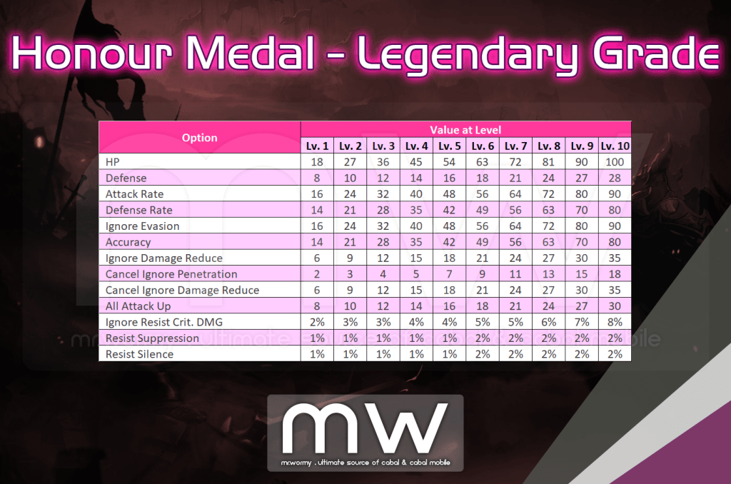 - Required Honour Medal Point per Level of Legendary Grade:
