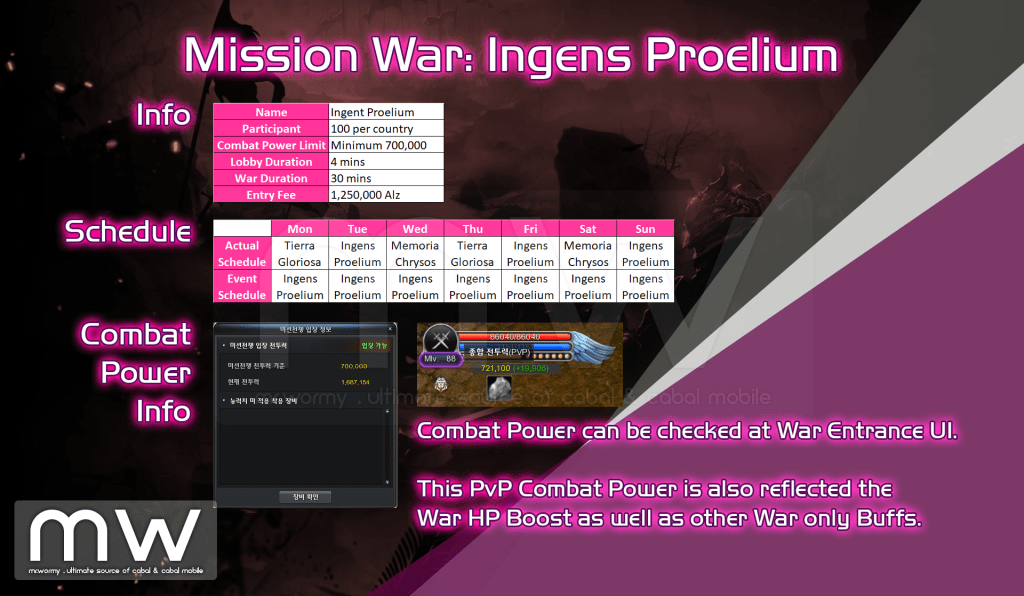 - Only players with minimum Combat Power of 700,000 can enter the Mission War: Inzent Prorilium.