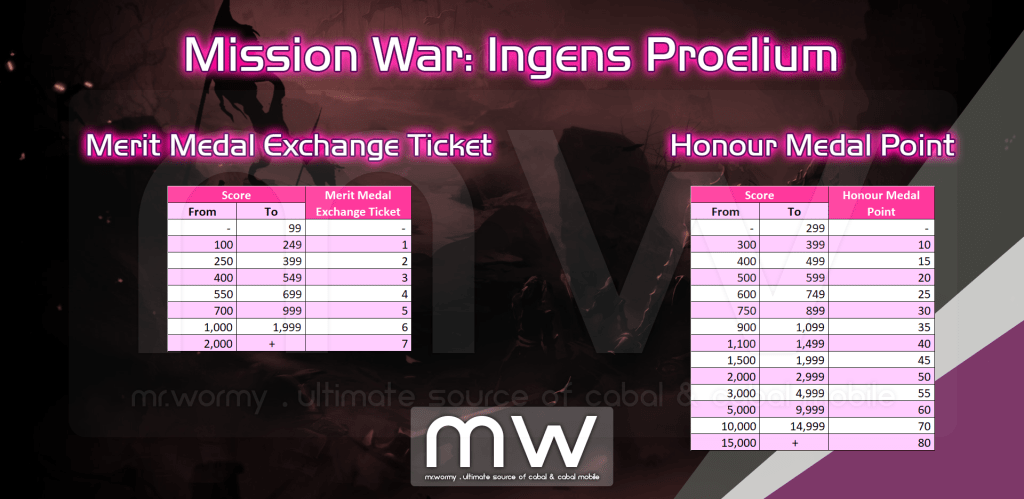 - Compensation for participating Mission War: Ingens Proelium is the same with other Mission Wars.
