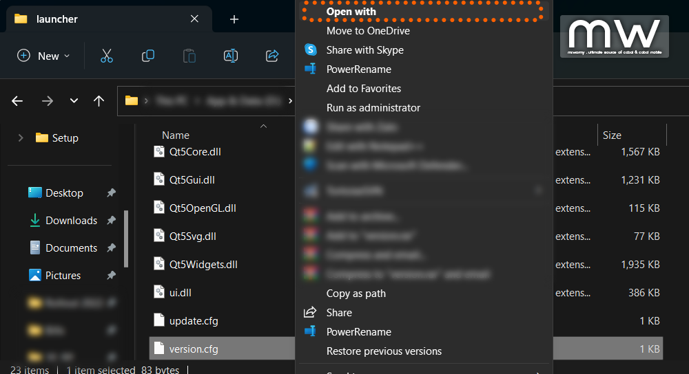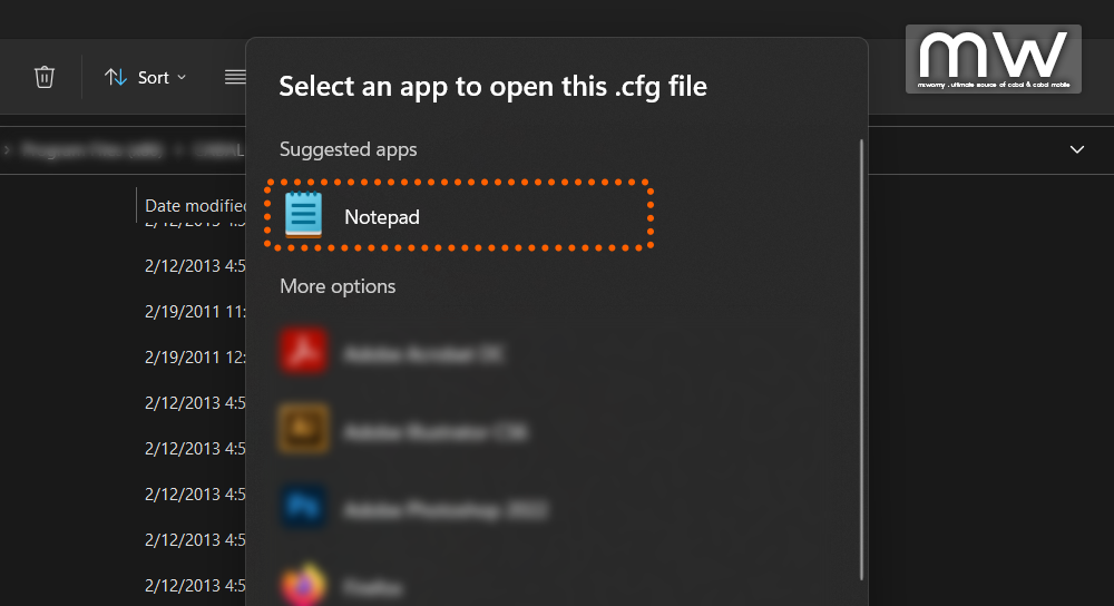 Step 1: Open your Cabal folder, this is the location where you can see the “Cabal.exe” and “CabalMain.exe” file (the part “.exe” could or could not display).