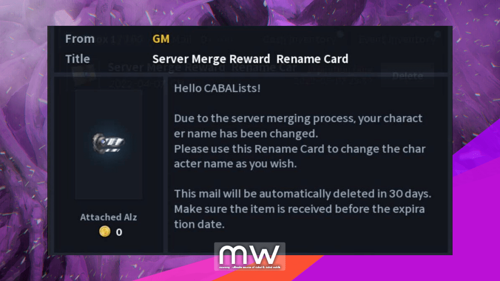 - Server Rename Card- Character with duplicate names will only receive this card.