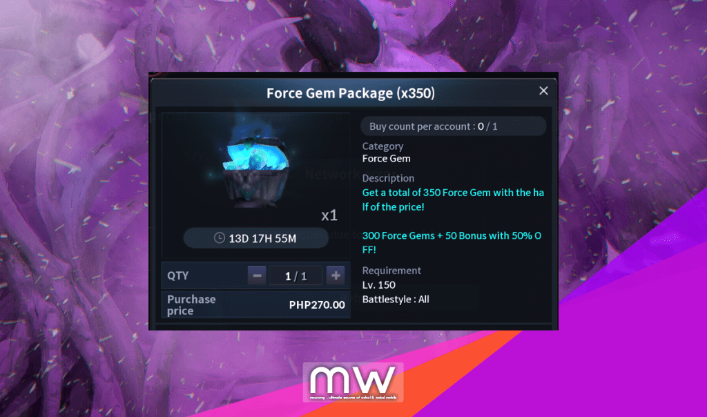 - 50% FG purchase / Giảm giá 50% Force Gem