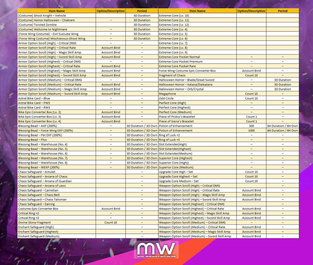 - 500,000 Alz + x5 Sweet Candy + x5 Halloween Trick Ticket + x5 Halloween Gift Ticket