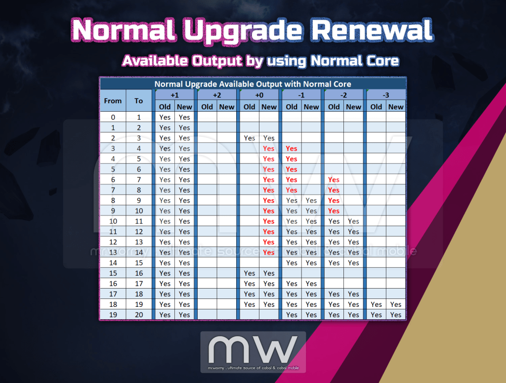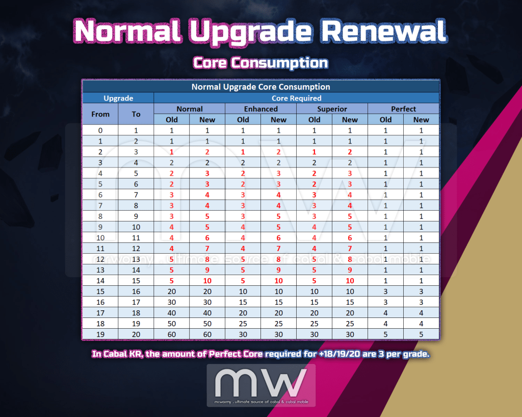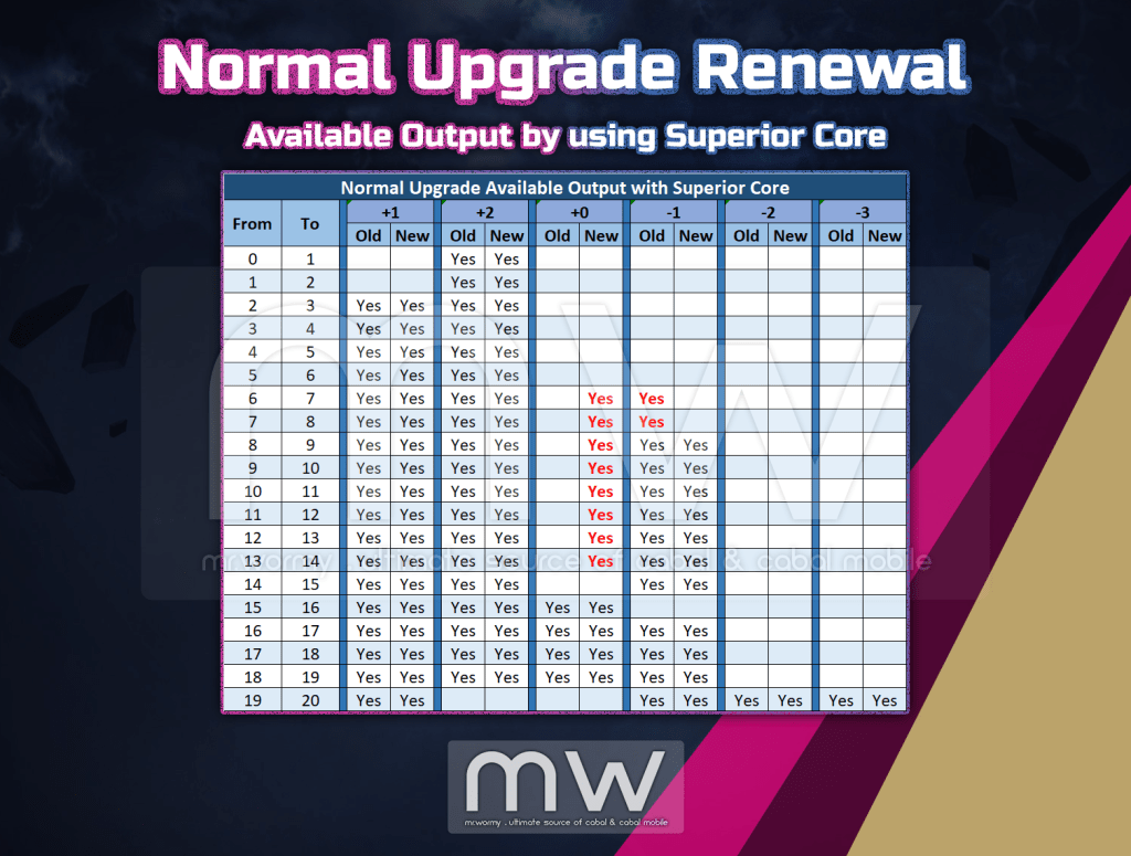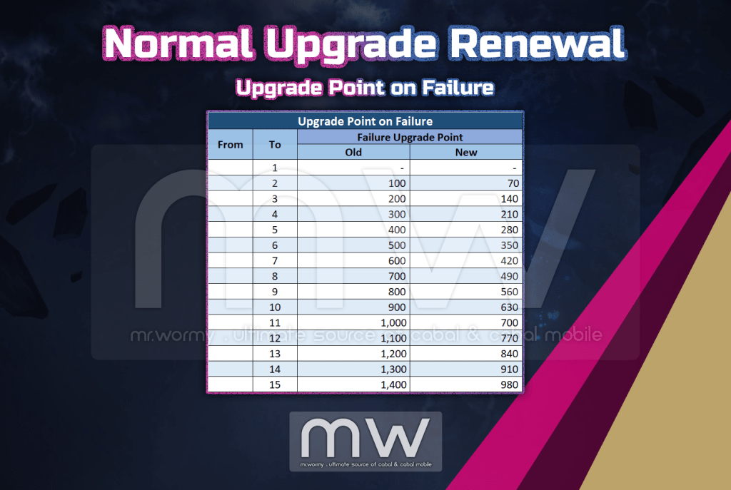 - There is no change of Upgrade Point for Normal Upgrade from +15 to +20.