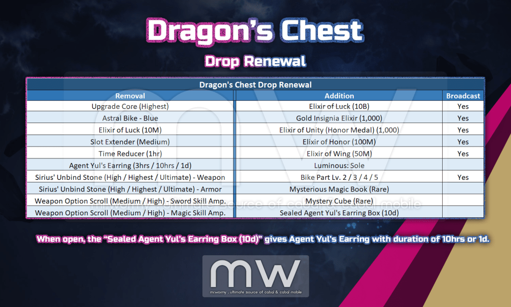 - Revise the drop list of Dragon’s Chest in Labyrinth.