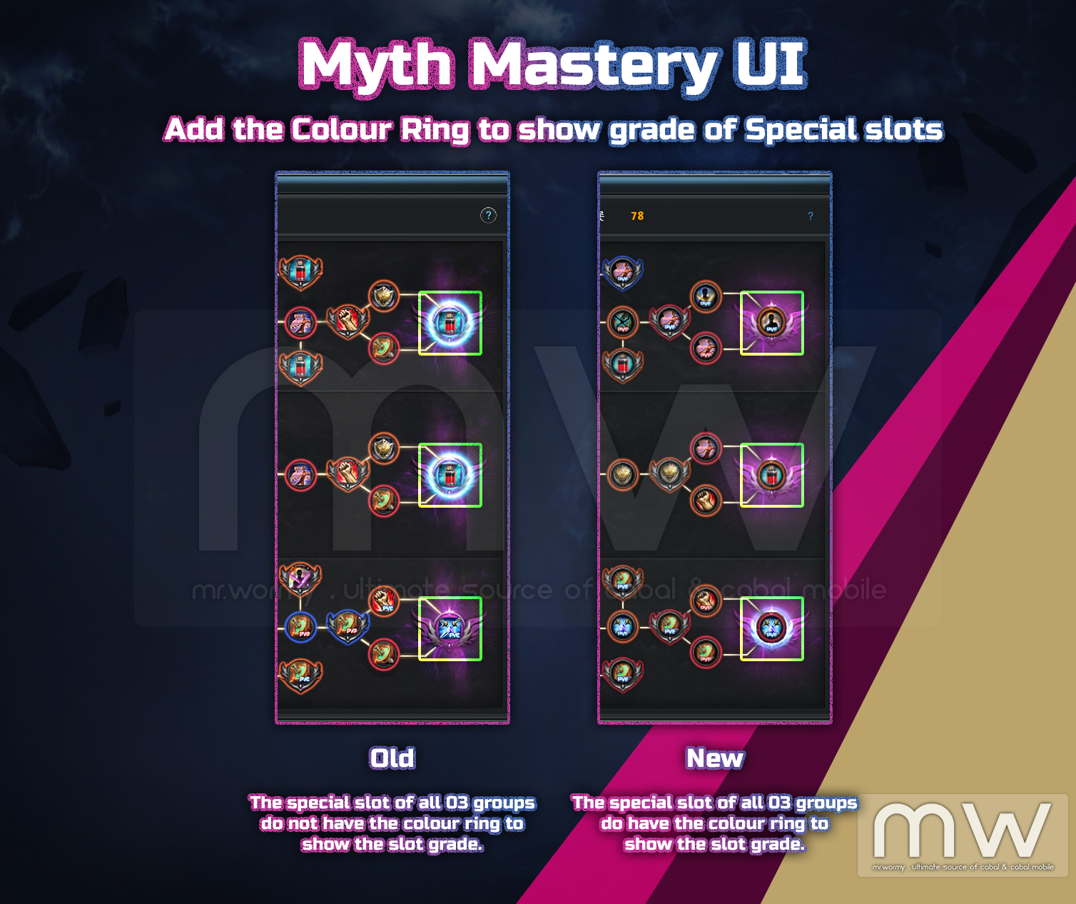 - Add the colour ring to show the slot grade for the special slots of Myth Mastery system.