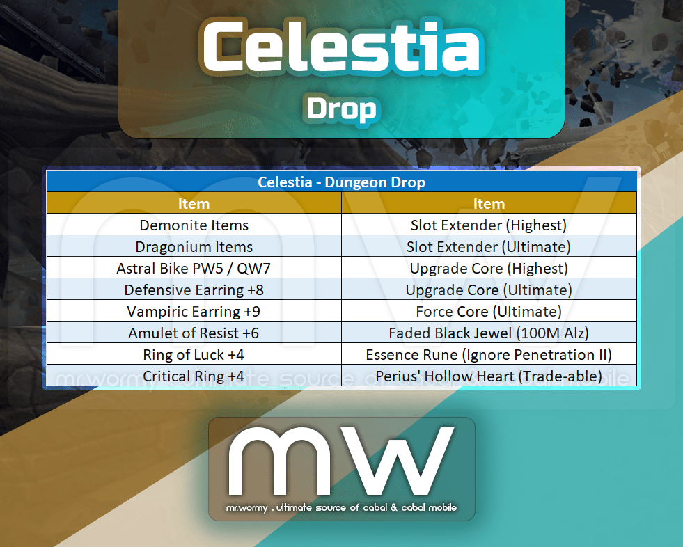 - Add drops for the dungeon “Celestia” (refer to the table below).