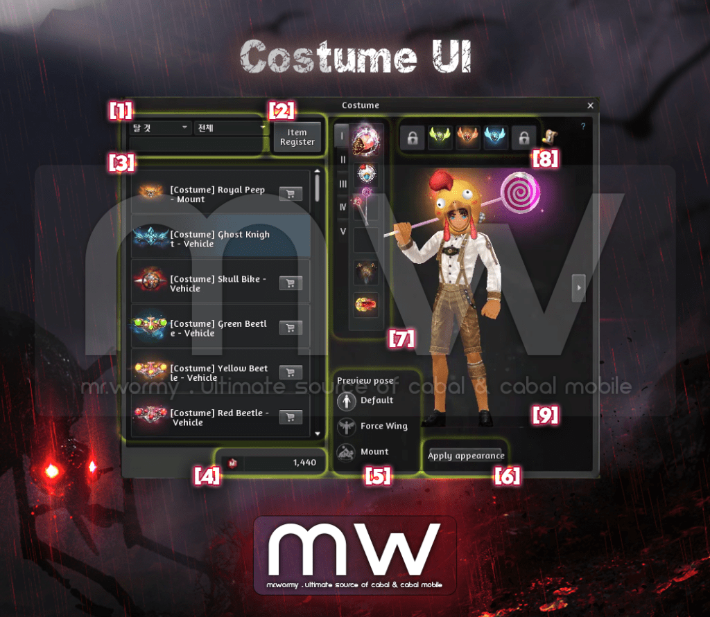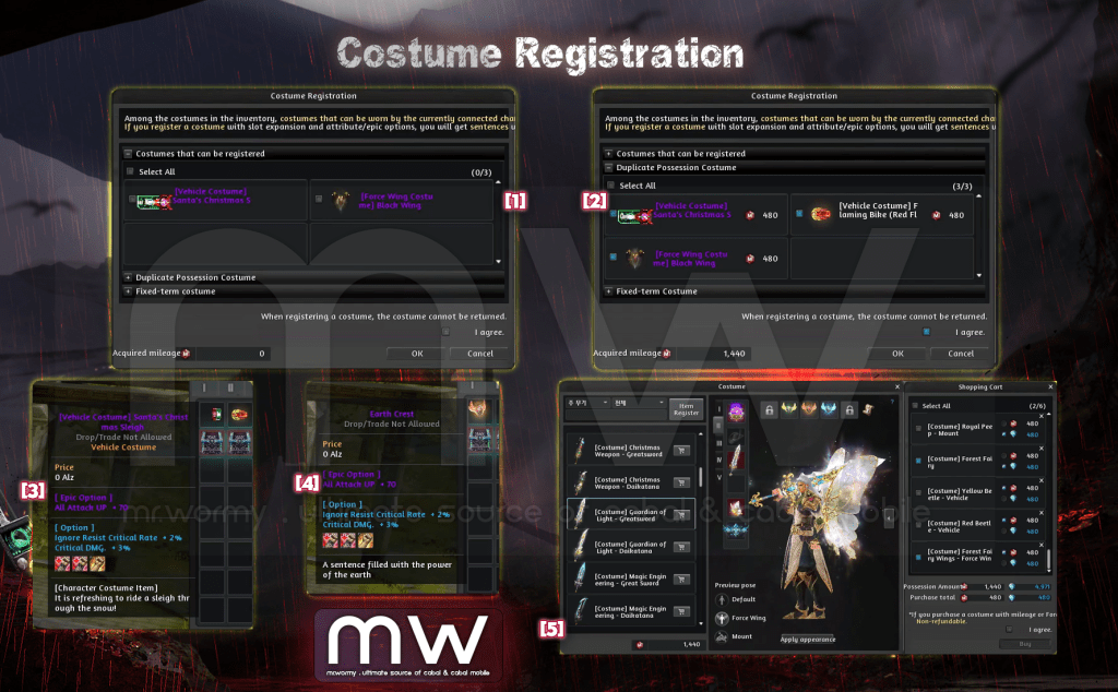 - All of equipped costumes before the update will be removed and send to character via in-game mail.