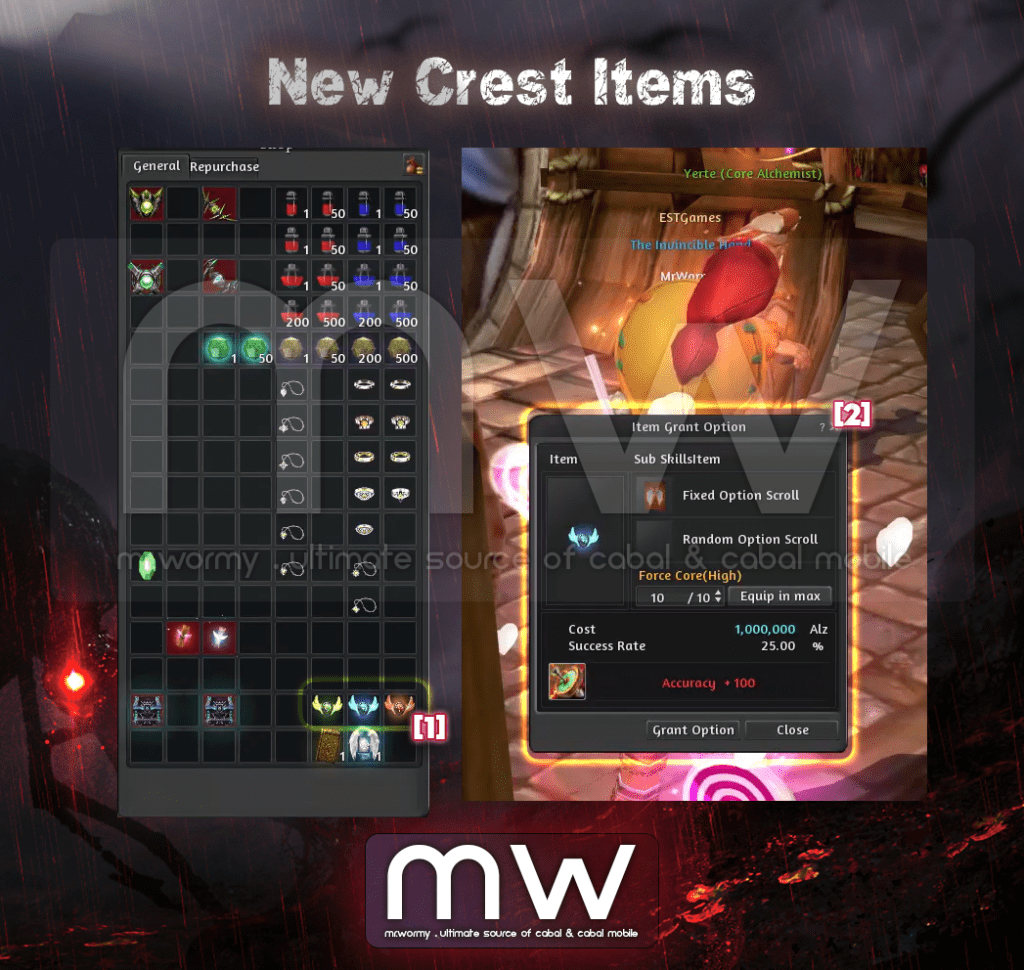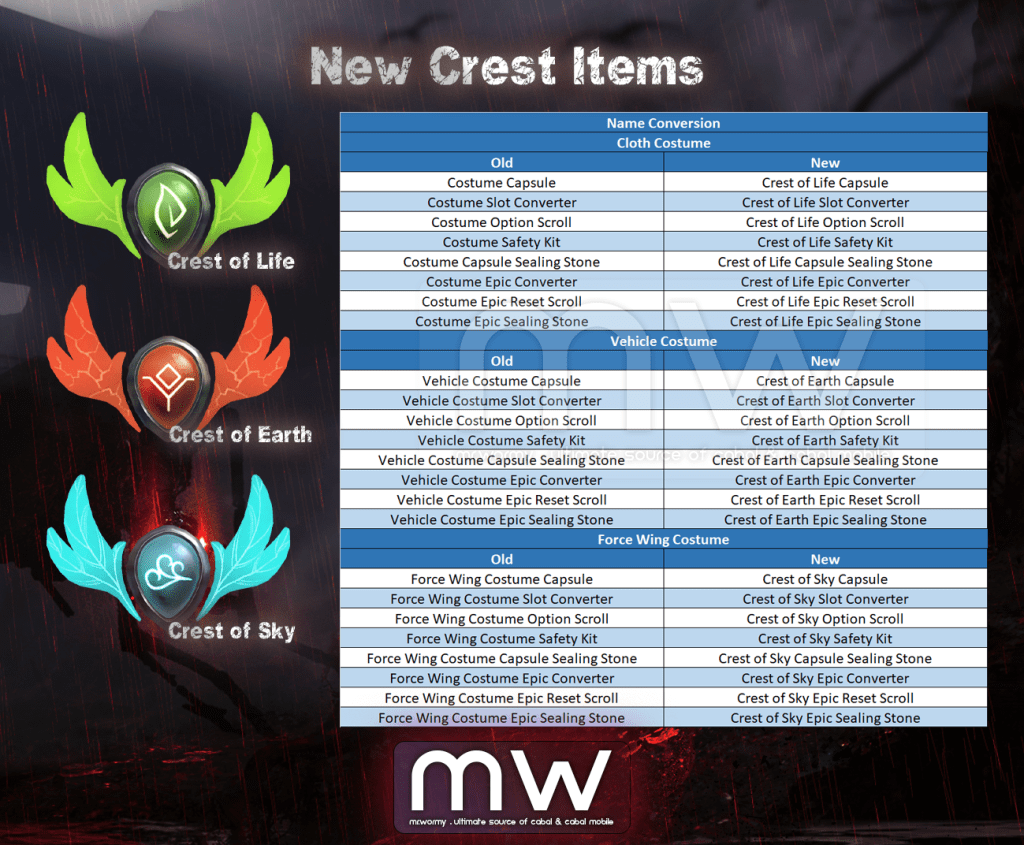 - New Item Type “Crest” to store the stats of Costumes