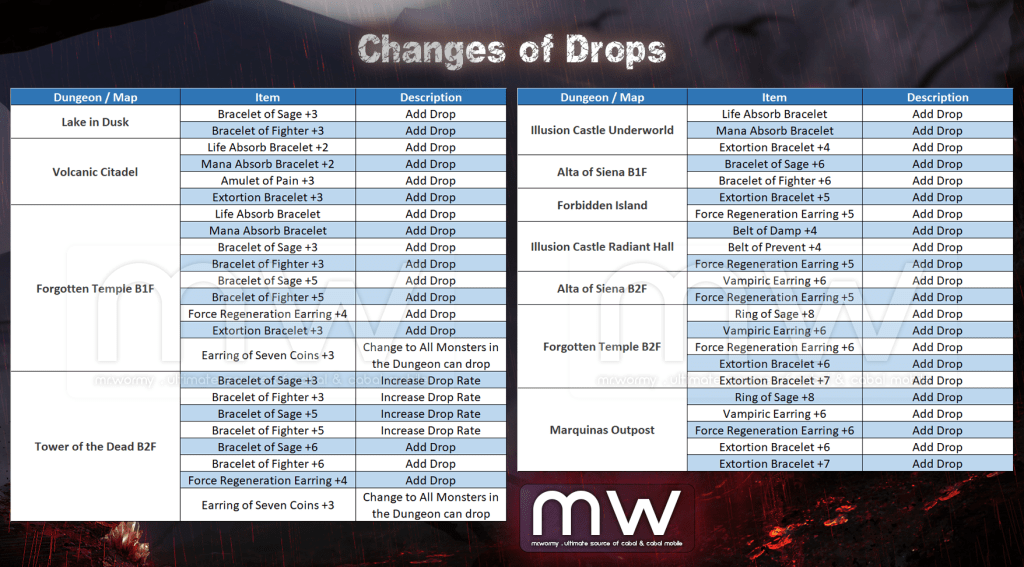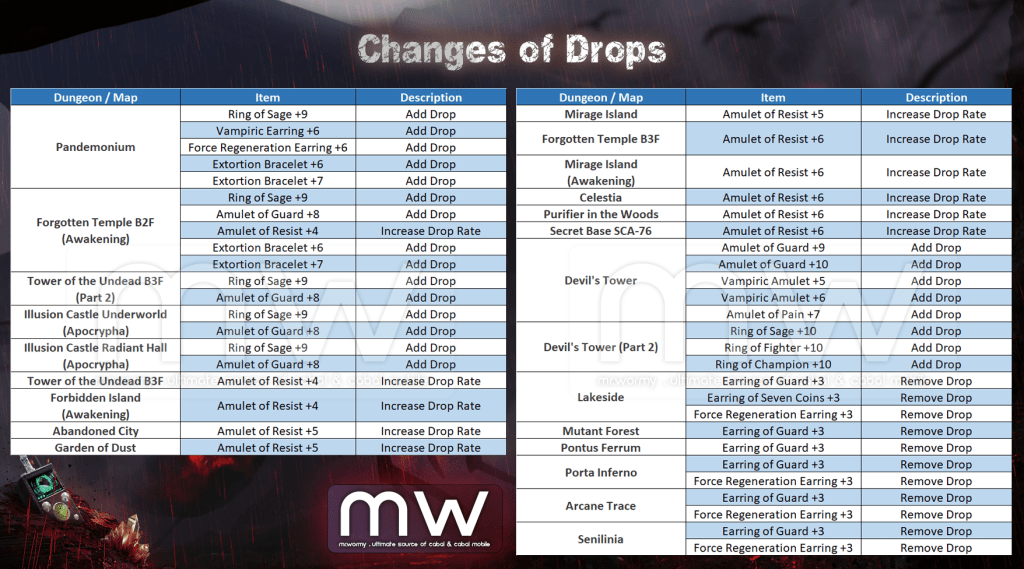 8. Changed some accessories drop for supporting the Collection system: