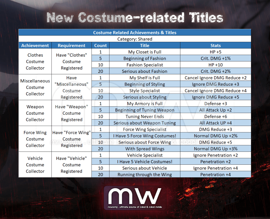 5. New Costume-related achievements and titles: