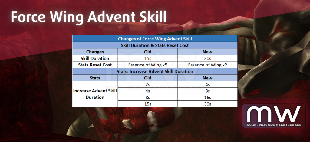 11. Changes related to Force Wing – Arrival Skill (aka Advent Skill)