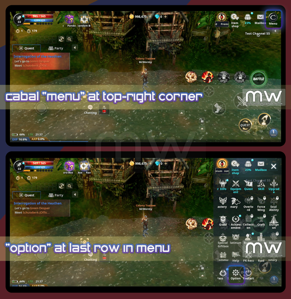 Open the game, access the game “menu” at the top-right corner of the screen. The click on the “Option” button at the last row of the menu.