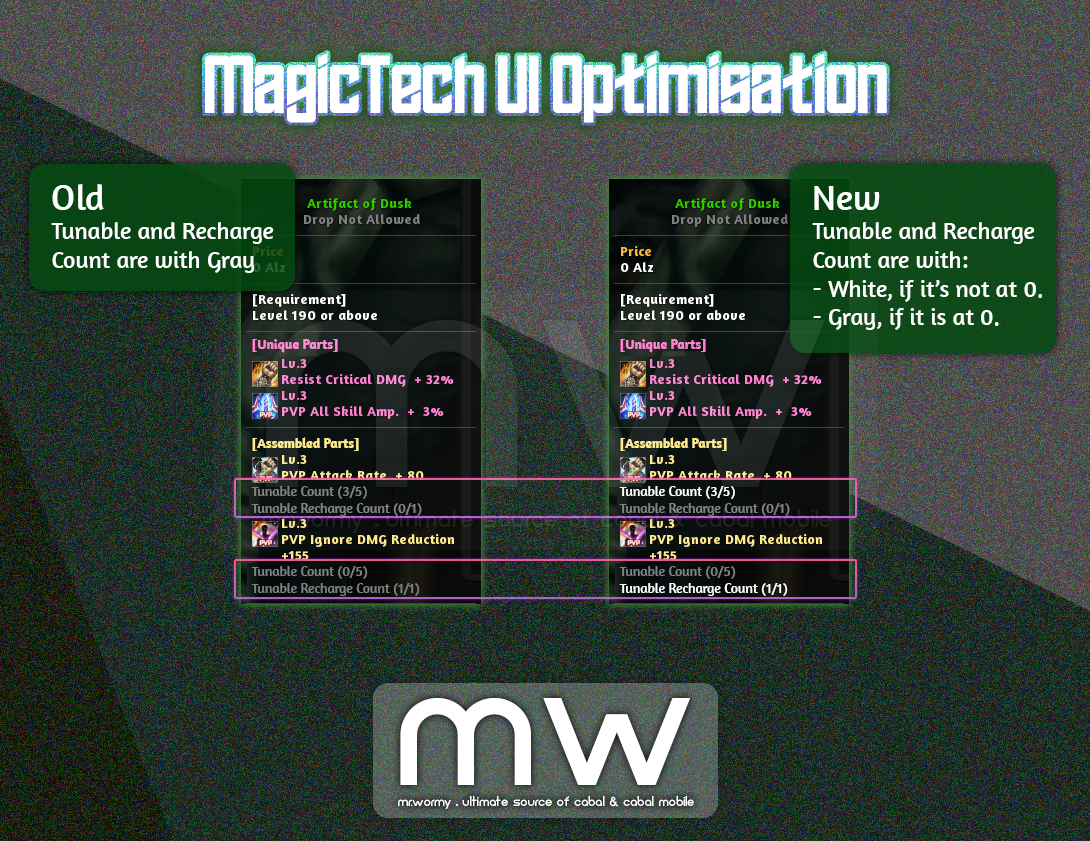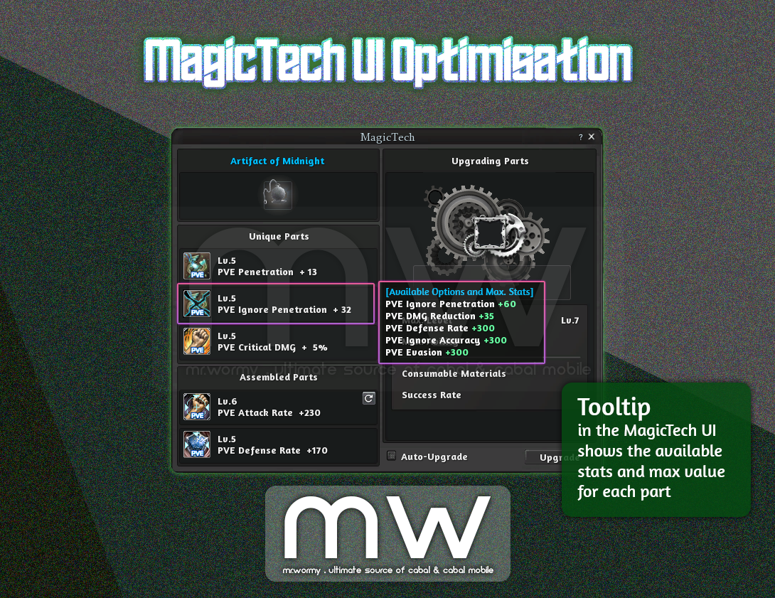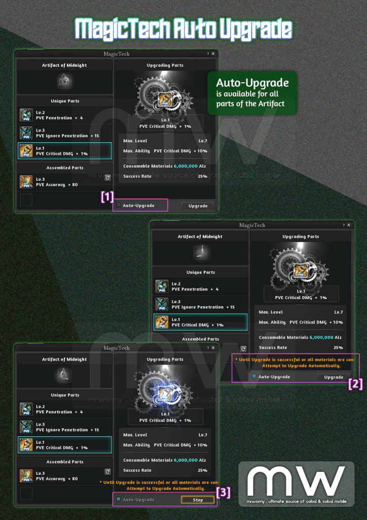 - [1] A new checkbox available in the MagicTech Upgrade, if the checkbox is selected the game will continuously try to upgrade the selected part.