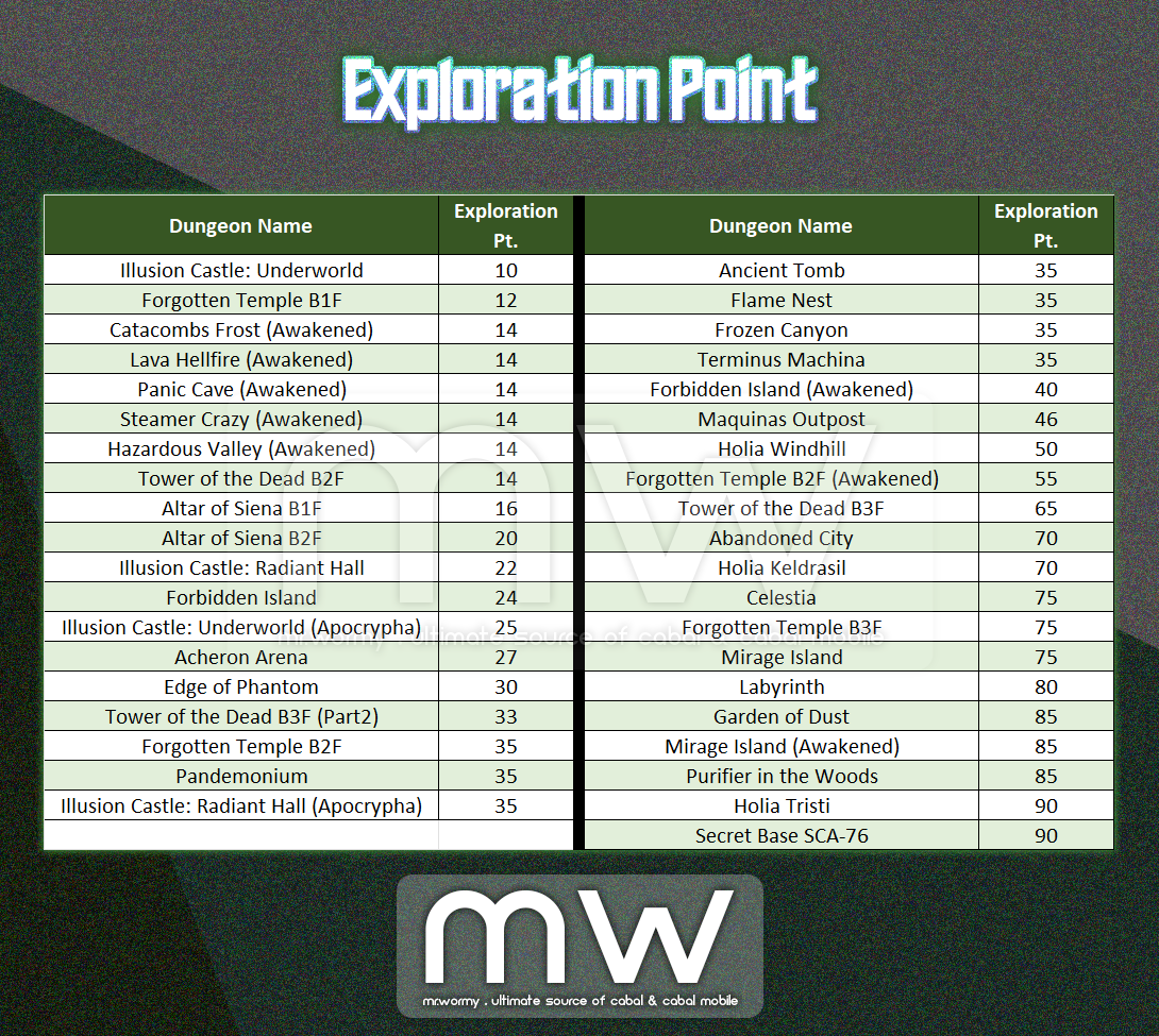 - By clearing eligible dungeons, player can earn “Exploration Point”.