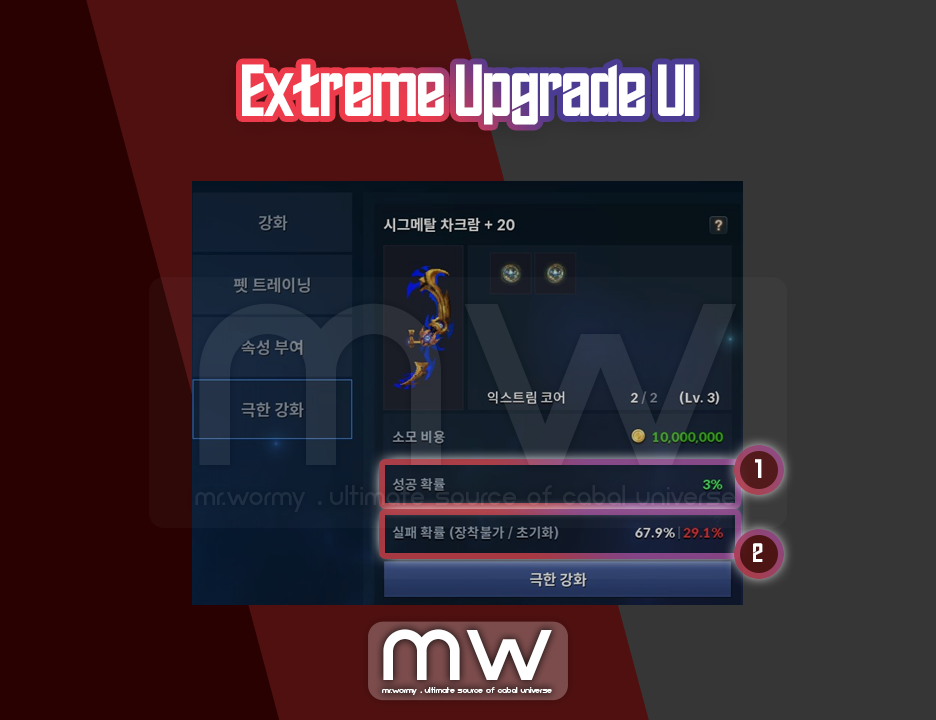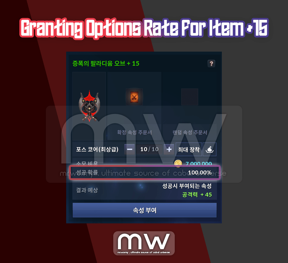 4. Increase the Success Rate of granting option for items at +15 or higher: