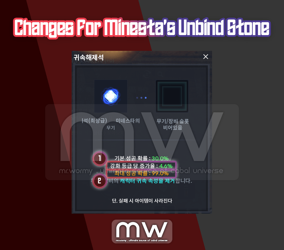 3. Increased the success rate calculation for Minesta’s Unbinding Stone: