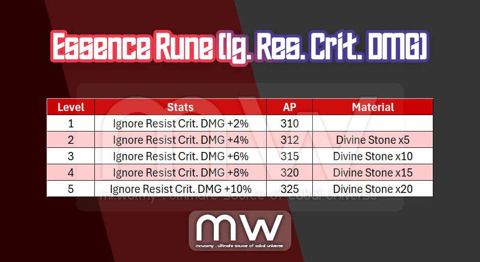 3. New Essence Rune (Ignore Resist Crit. DMG):