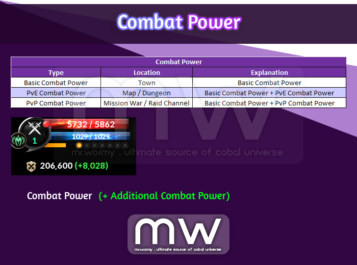 - Additional Combat Power: Based on temporary stats sources like: buff potion, buff skills, battle modes…