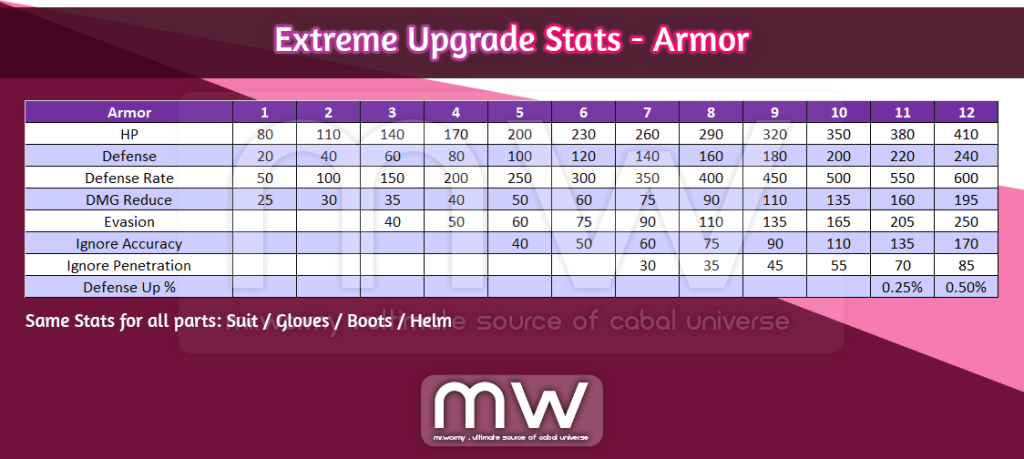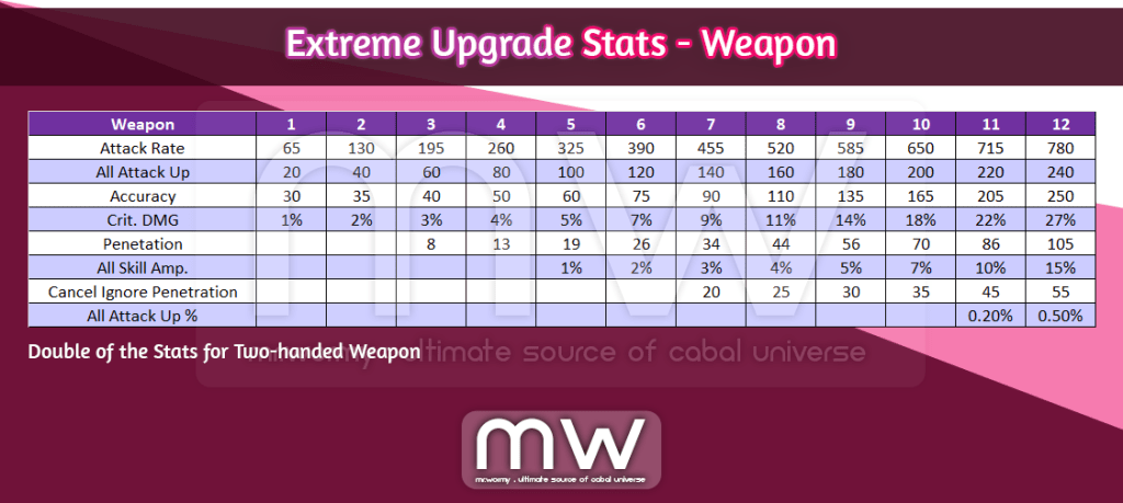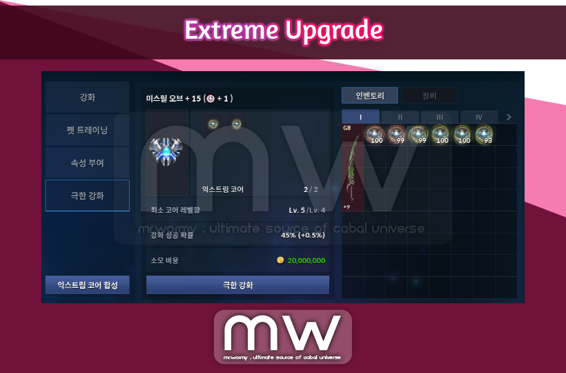 - Number of required cores, minimum level of required cores and upgrade cost are depended on the Extreme Upgrade item, grade.