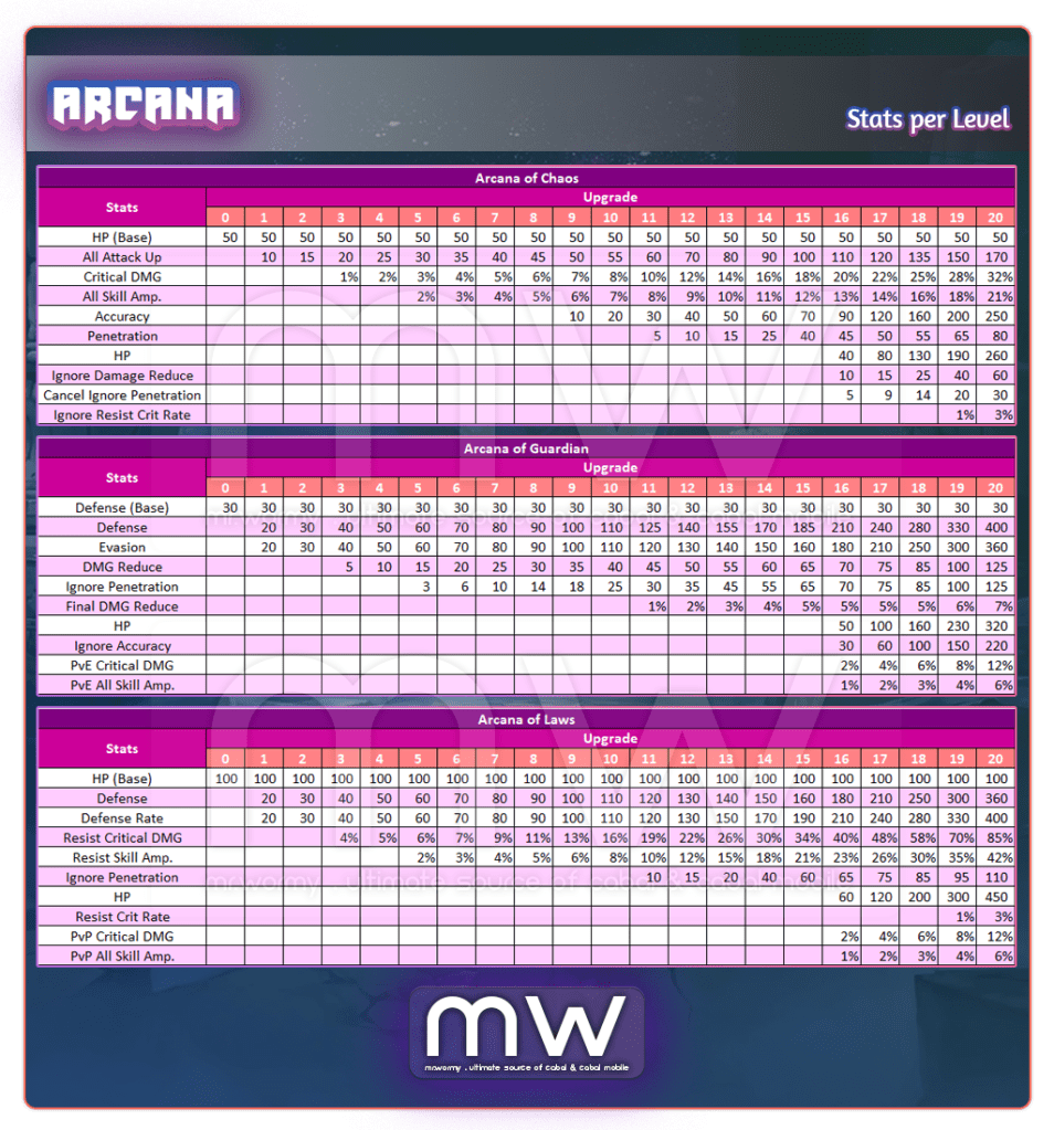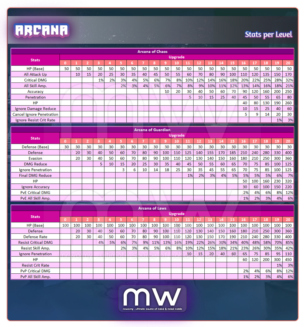 - Allow Arcana of Chaos / Guardian / Laws to be upgraded up to +20.