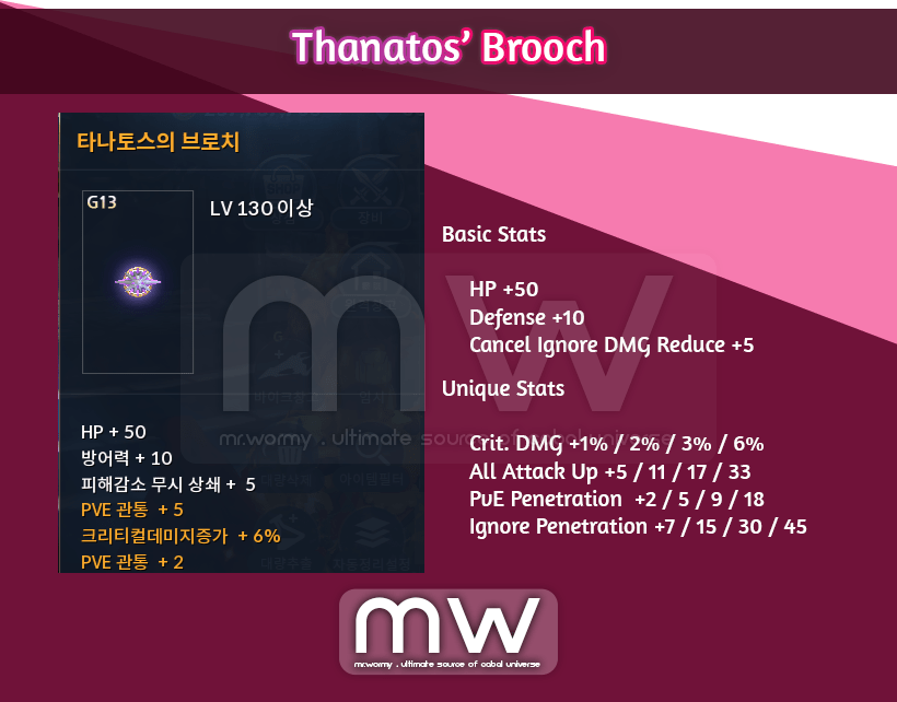 - By using Sealed Brooch of Thanatos a “Thanatos’ Brooch” with 03 unique options: