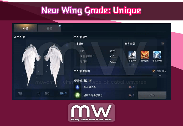 - After transcendence, the Force Wing will be upgraded to Grade Unique with Level 1.