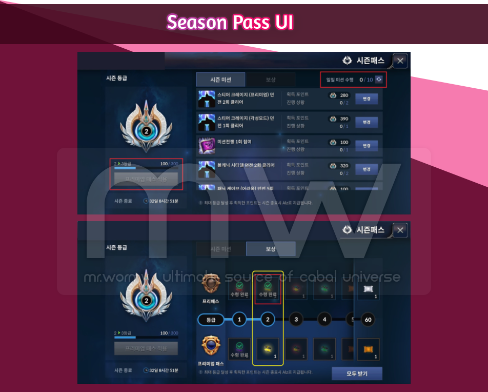 - Rewards are granted based on level achieved in the Season Pass.