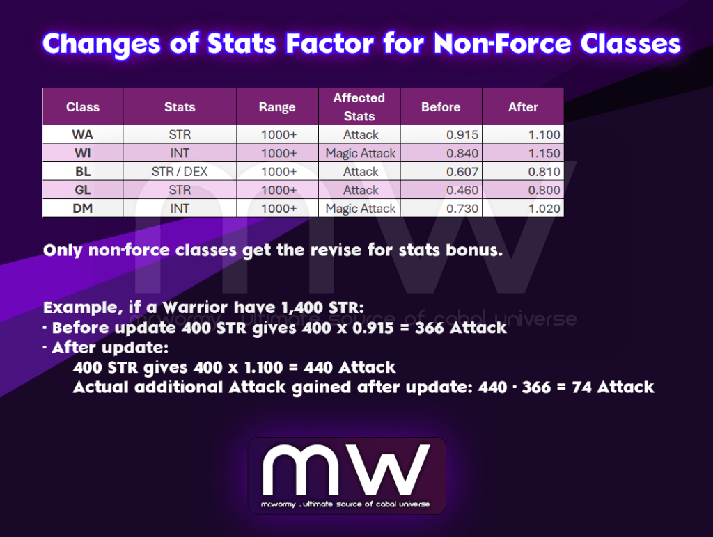 - Adjust the factor for gaining the Attack / Magic Attack from basic stats for non-force classes: