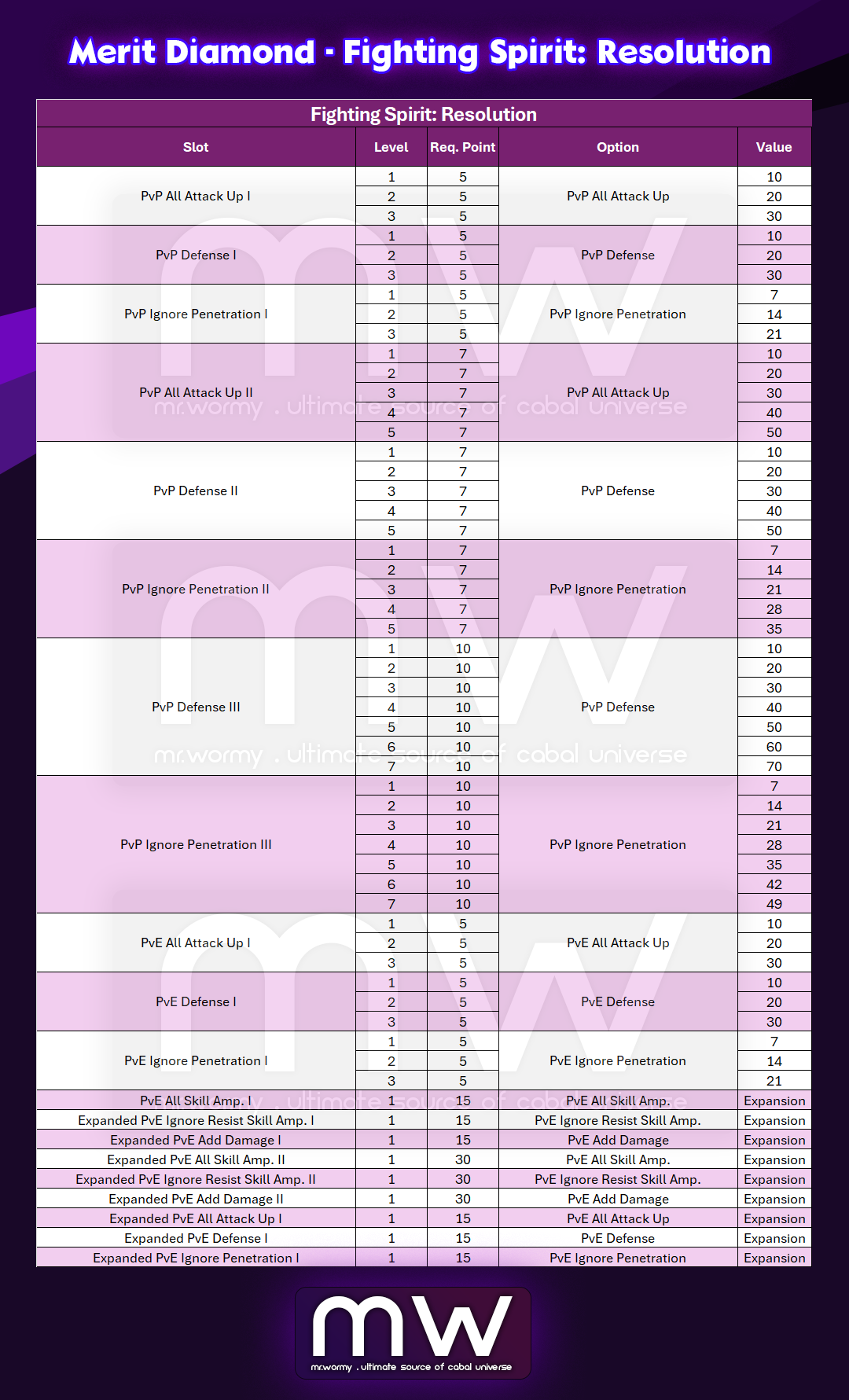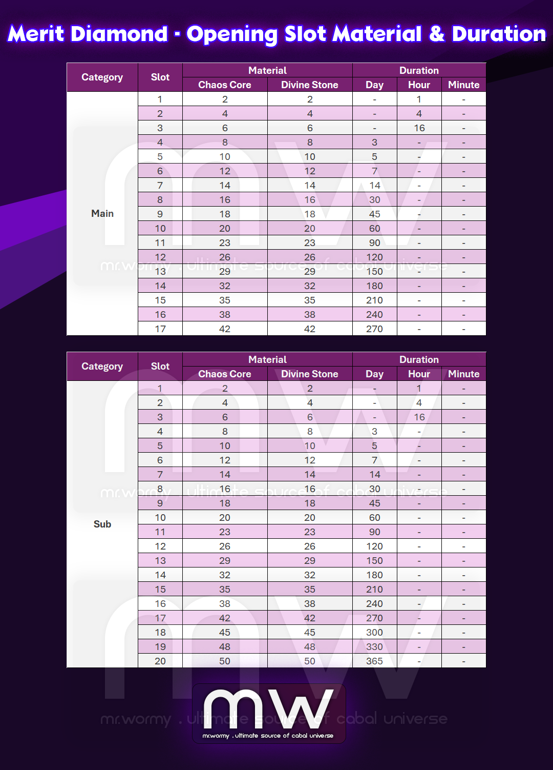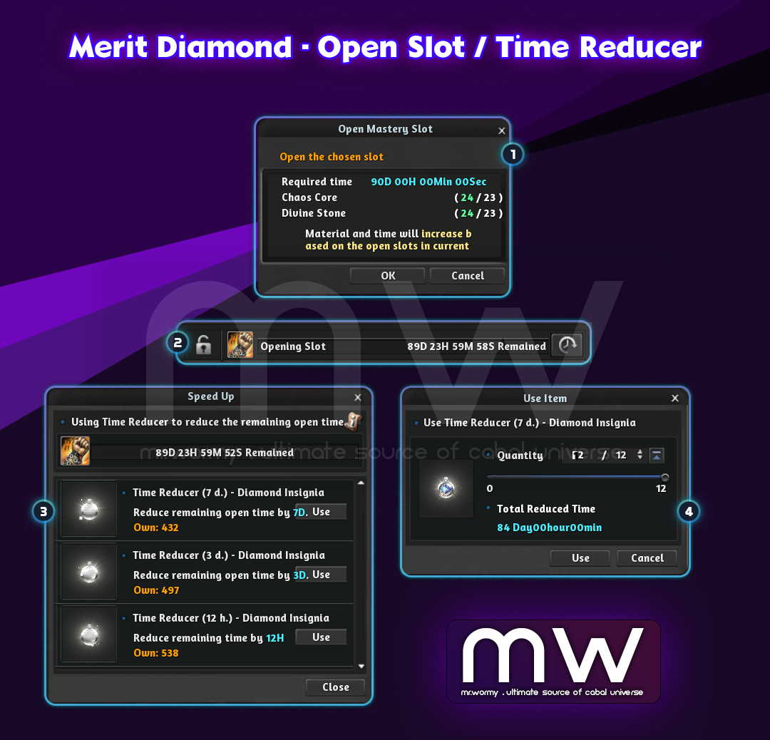 - Opening Slots of the Merit Mastery – Diamond Insignia: