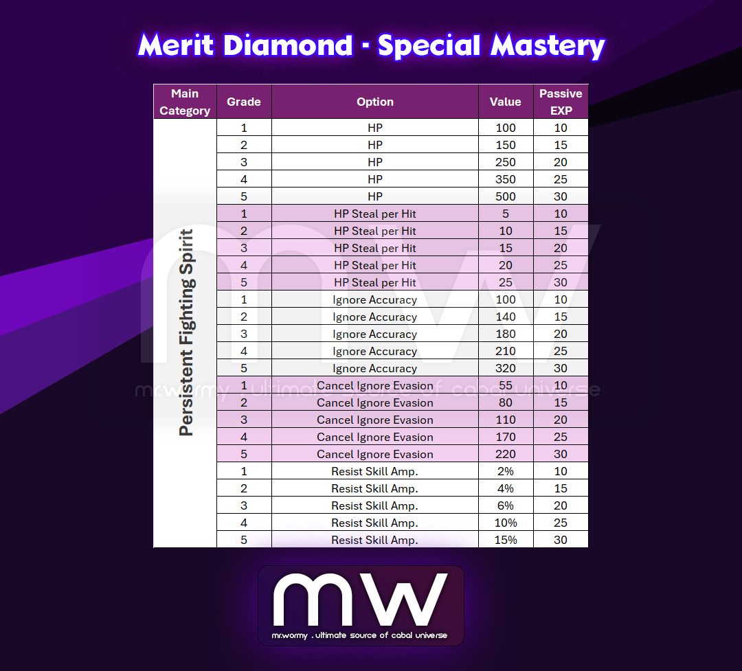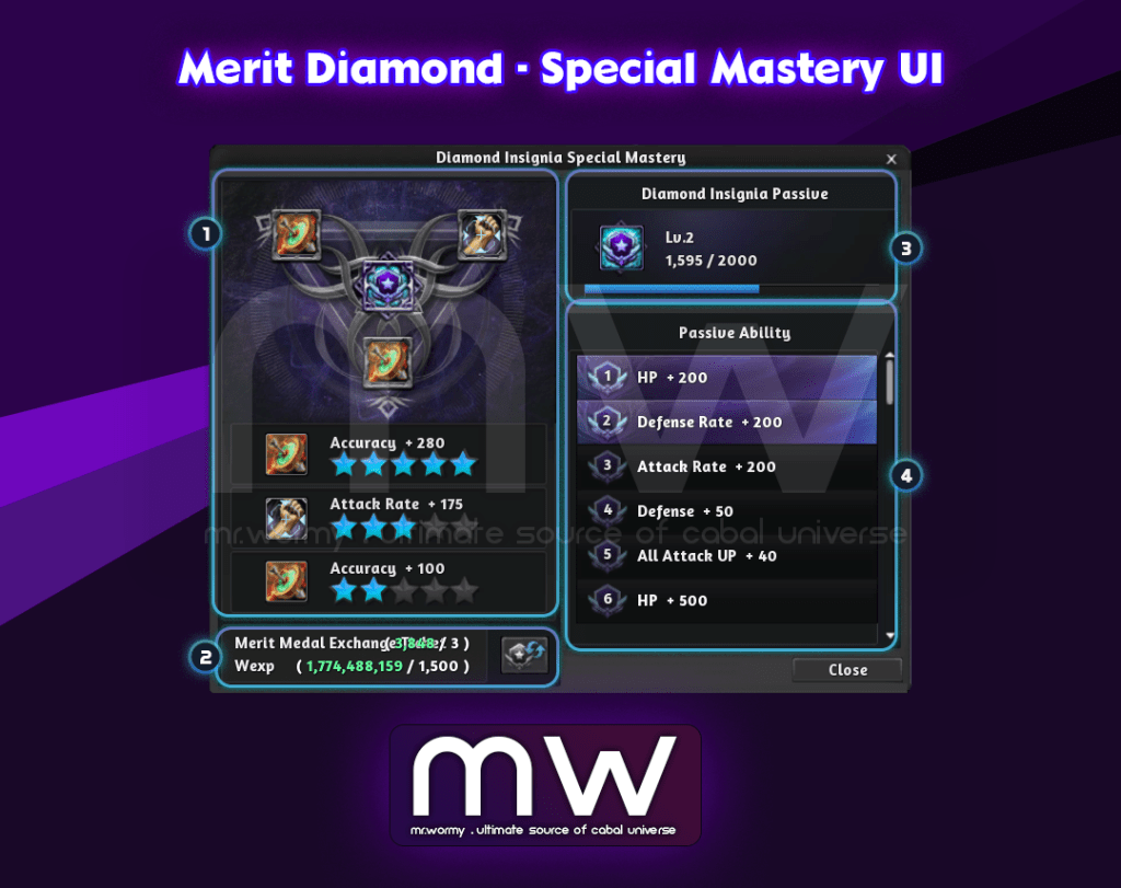 - By granting the options for Special Mastery of Diamond Insignia, Passive EXP will be accumulatively stored.