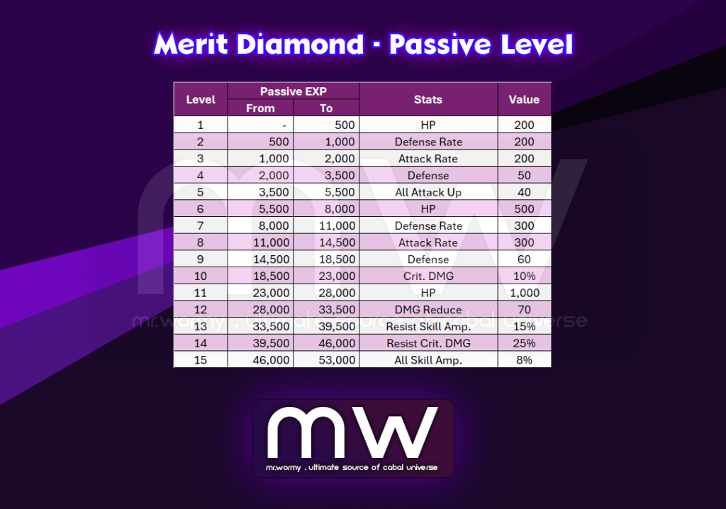- By growing the Passive EXP, player can obtain the Diamond Insignia Passive Level.