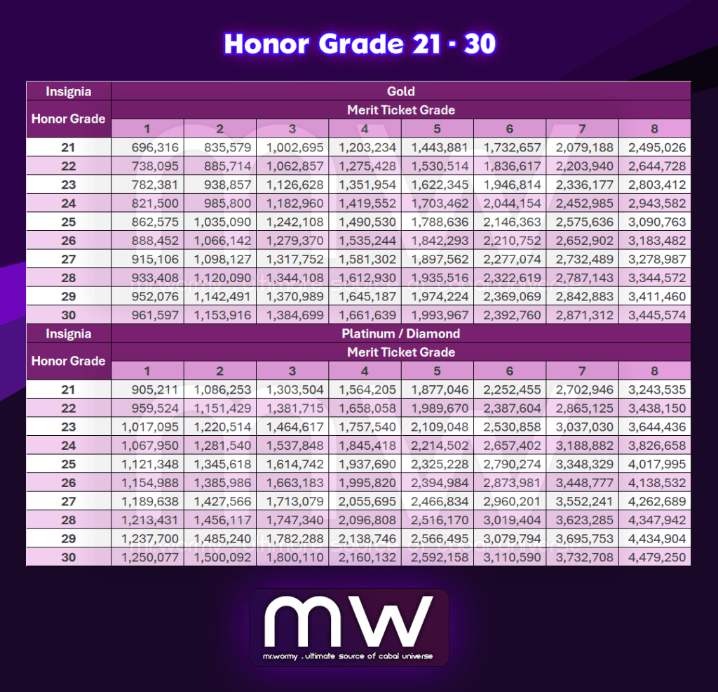 - When the Merit Mastery – Platinum Insignia is max, player can rank up to Merit Mastery – Diamond Insignia.