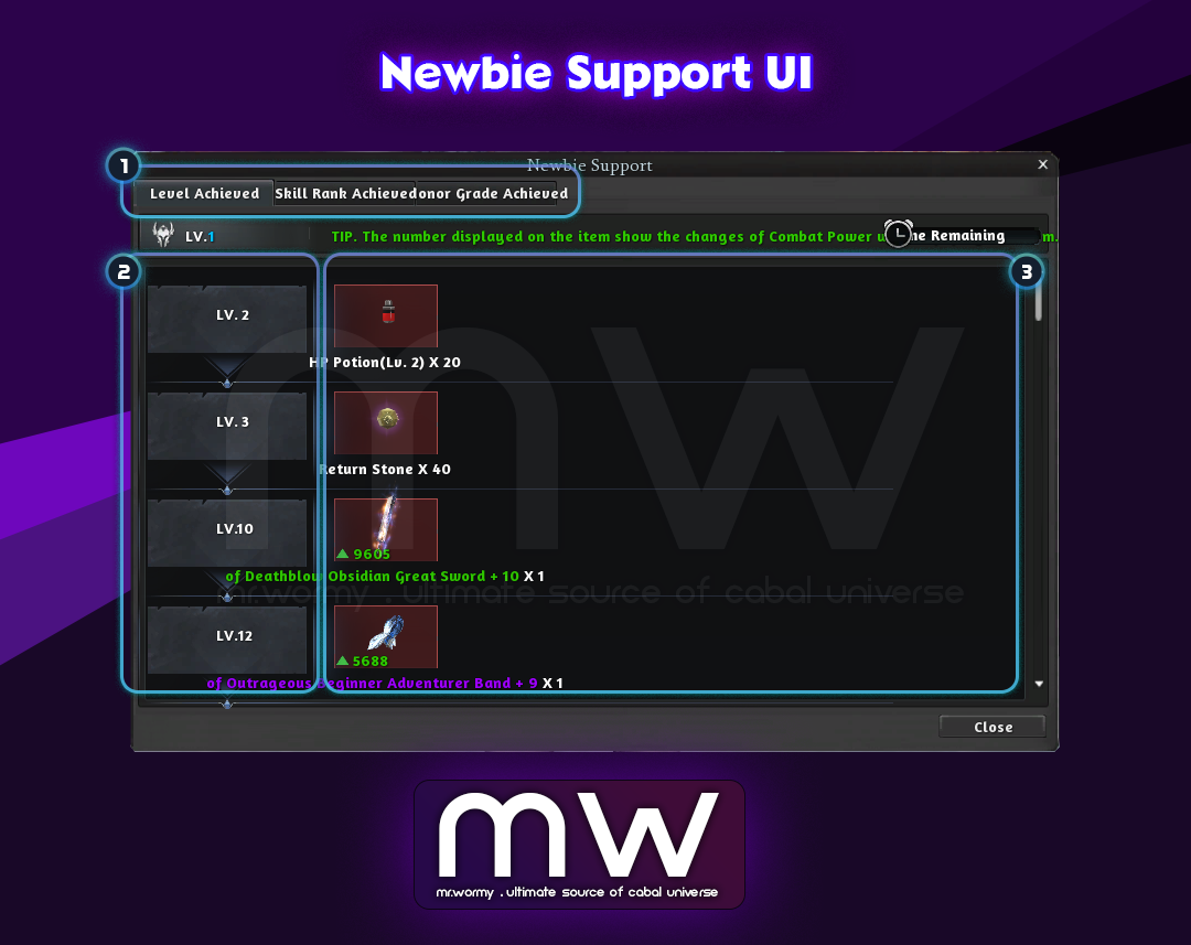 - If player do not obtain items from the “Newbie Support” UI, after the timer expires, reward could not be obtained.