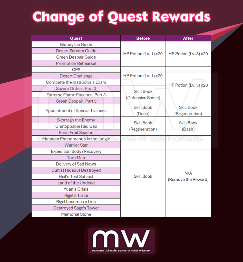 1. Changes related to Quest Rewards due to the introduction of the Newbie Support feature.